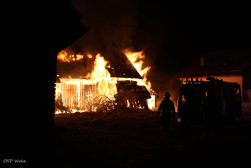 23 marca około godziny 19.30 dyżurny SKKP PSP Pszczyna otrzymał zgłoszenie o pożarze stodoły w Woli przy ul. Mokrej. Na miejsce natychmiast zadysponowane zostały zastępy OSP Wola, OSP Gilowice, OSP Miedźna, OSP Góra, OSP Jankowice i dwa zastępy JRG Pszczyna. Po dotarciu na miejsce strażacy zastali stodołę w całości objętą ogniem. Pierwsze działania polegały na obronie pobliskiego budynku jednorodzinnego. Około północy pożar został ugaszony. Niestety 24 marca około godziny 7 rano zastępy ponownie zostały wezwane na miejsce celem przelania pogorzeliska. Pszczyńscy Policjanci prowadzą dochodzenie mające na celu wyjaśnienie przyczyn i okoliczności powstania pożaru.