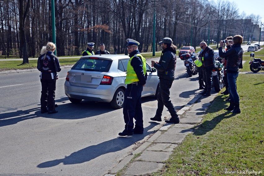 7 kwietnia Policjanci tyskiej drogówki wraz z motocyklistami Klubu Motocyklowego Brave Dogs Polska, uczestniczyli w akcji „Patrz w lusterka, motocykle są wszędzie”. Wspólne działania tyskiej drogówki oraz motocyklistów zorganizowane zostały po to, by propagować bezpieczeństwo na drogach, poprzez zwrócenie uwagi innych kierowców na tę grupę niechronionych uczestników ruchu drogowego. Do akcji włączyli się również przedstawiciele portalu 112Tychy.pl Pod czujnym okiem mundurowych zatrzymywane zostały pojazdy, których kierujący badani byli na zawartość alkoholu, a pasażerom wręczano elementy odblaskowe. Motocykliści rozdawali natomiast kierowcom naklejki z hasłem „Patrz w lusterka, motocykle są wszędzie”. Policjanci przeprowadzili także rozmowy profilaktyczne z samymi miłośnikami jednośladów. Należy pamiętać, że najmniejszy błąd kierowcy samochodu może ich kosztować życie. Dlatego to właśnie motocykliści i rowerzyści, których nie chronią pasy bezpieczeństwa, poduszki powietrzne, czy karoseria pojazdu, powinni zachować szczególną uwagę. Motocyklista nie może zapominać o właściwym ubiorze ze specjalnymi protektorami oraz elementami w intensywnym, dobrze widocznym dla innych kolorze. Powinien zaopatrzyć się również w dobry kask. Należy zwrócić uwagę na atesty, jakie musi posiadać taki strój. Podróżując po zmierzchu, musimy pamiętać, że ograniczona widoczność, zła nawierzchnia, czy dzikie zwierzęta wychodzące z pobocza na jezdnię, mogą okazać się śmiertelnym zagrożeniem. Dlatego tak ważne jest, aby prędkość jazdy była dostosowana do warunków panujących na drodze. Apelujemy o rozsądek i wyobraźnię – motocyklista często nie jest w stanie wykonać takich manewrów hamowania i omijania, jakie można wykonać samochodem. Świadomość ta powinna towarzyszyć każdemu kierowcy.