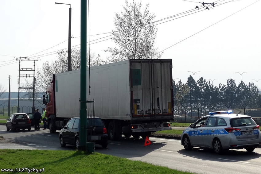 13 kwietnia około godziny 8.20 na ul. Towarowej w rejonie skrzyżowania z ul. Cielmicką doszło do zdarzenia drogowego . W tył Skody uderzyła ciężarowa Scania z naczepą. Ruch w kierunku ul. Serdecznej został zablokowany. Na miejsce wezwany został patrol Policji oraz ZRM. Kierowca osobówki uskarżał się na ból. W toku wykonywanych na miejscu czynności przez Policjantów okazało się, ze to kierowca Skody ponosi winę za spowodowanie tego zdarzenia drogowego. Podczas wykonywania manewru zmiany pasa ruchu nie ustąpił on pierwszeństwa przejazdu znajdującej się na sąsiednim pasie ciężarówce. Na szczęście skończyło się na mocno uszkodzonych pojazdach. Kierowca osobówki po przebadaniu przez ratowników medycznych pozostał na miejscu. Sprawa zakończyła się nałożeniem mandatu na kierowcę osobówki. Około godziny 10 uszkodzone pojazdy zostały usunięte i ruch został przywrócony.