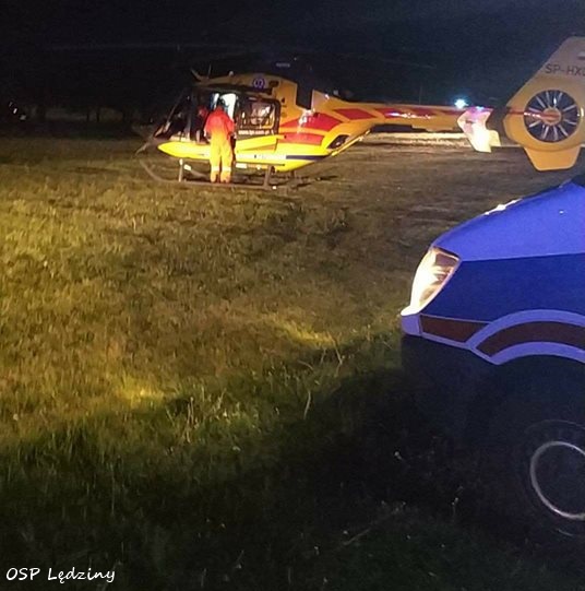 7 maja około godziny 22 dyżurny SKKM PSP Tychy otrzymał zgłoszenie o konieczności zabezpieczenia lądowiska dla śmigłowca LPR Ratownik 6 w Lędzinach. Na wyznaczone lądowisko gminne (boisko piłkarskie) przy ulicy Sobieskiego w Lędzinach wyjechały zastępy OSP Lędziny (GBA) i JRG Tychy (GBA, SLRt). Śmigłowiec LPR został zadysponowany przez ZRM, który udzielał pomocy poszkodowanemu górnikowi KWK Piast – Ziemowit. Jak udało nam się ustalić do zdarzenia doszło w ścianie 312, na pokładzie 206/1. Podczas prac zbrojeniowych wąż ze sprężonym powietrzem uderzył pracownika w głowę (uraz żuchwy). Górnik przytomny został przetransportowany do szpitala św. Barbary w Sosnowcu. Trwa ustalanie przyczyn i okoliczności tego zdarzenia.