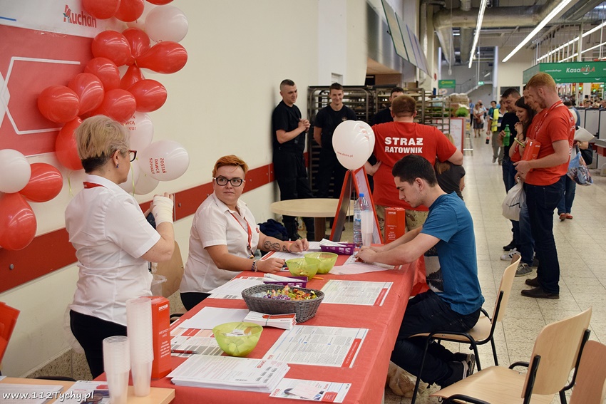W dniach 11 – 12 maja na terenie marketu AUCHAN zorganizowane zostały Urodzinowe Dni Dawcy Szpiku wraz z fundacją DKMS i partnerami. Wśród partnerów akcji znaleźli się przedstawiciele Wilkowyjskich Zlotów Motocyklowych, strażacy OSP Bieruń Stary, portal 112Tychy.pl oraz Tomasz Duda z firmy Dudus Med. W trakcie akcji można było zarejestrować się w bazie potencjalnych dawców szpiku, a dodatkowo podszkolić się w udzielaniu pierwszej pomocy. Warto nadmienić, że na terenie marketu Auchan zamontowany jest automatyczny defibrylator AED ( a wszyscy pracownicy sklepu są przeszkoleni w sposobie jego użycia). Już niebawem kolejne takie akcje odbędą się na terenie naszego miasta. W trakcie tej akcji zarejestrowało się ponad 50 osób a tym również strażacy i ratownicy. Najbliższa akcja odbędzie się 26 maja na Stadionie Miejskim przy ul. Edukacji 7 w Tychach, pod hasłem Dzień Dawcy Szpiku dla Agaty, Jacka i Innych. Zapraszamy wszystkich do udziału.