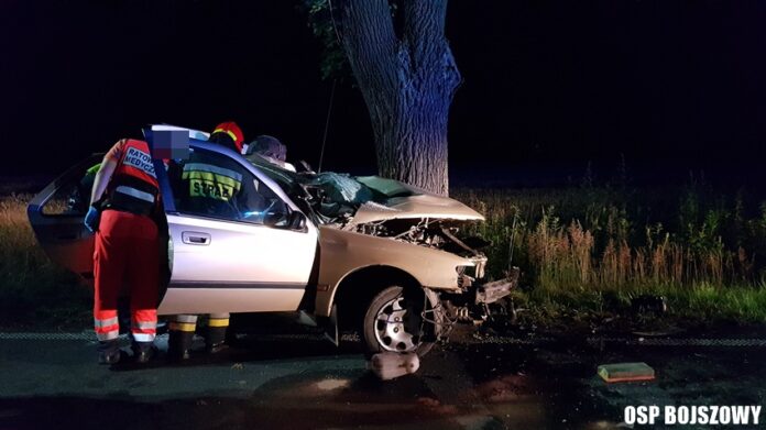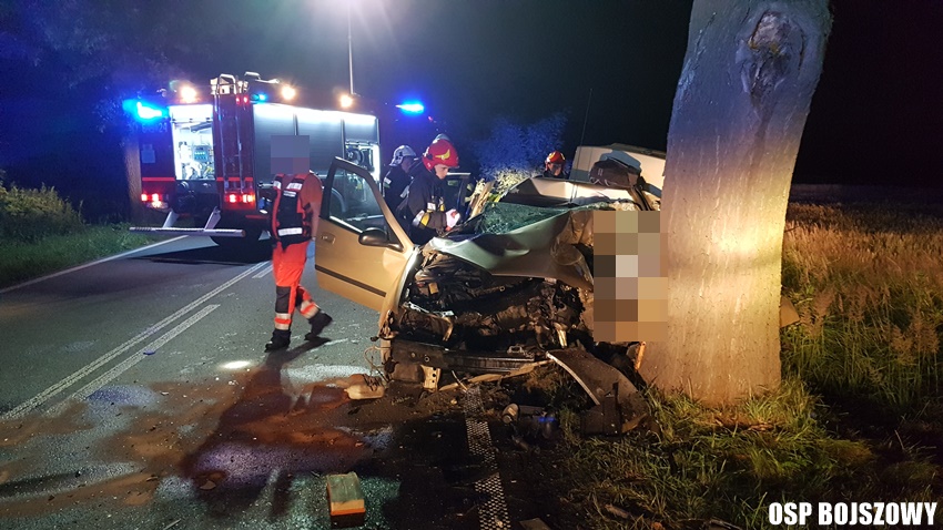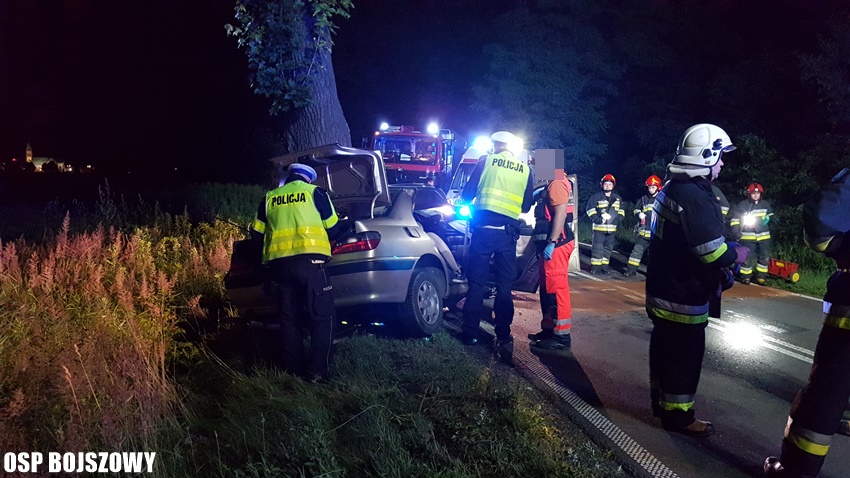 29 czerwca około godziny 23.05 dyżurni SKKM PSP Tychy i KPP Bieruń otrzymali zgłoszenie o wypadku drogowym na ulicy Gościnnej w Bojszowach. Ze zgłoszenia wynikało, że kierujący Peugeotem uderzył w przydrożne drzewo. Na miejsce natychmiast zadysponowane zostały zastępy OSP Bojszowy (GBA, GBA), JRG Tychy (GBA, SCRt), ZRM i patrole bieruńskiej Policji. Po dotarciu na miejsce zgłoszenie potwierdziło się. Strażacy przystąpili do zabezpieczenia miejsca zdarzenia, jego oświetleniu oraz wykonaniu dostępu przy użyciu narzędzi hydraulicznych. Podczas wykonywania dostępu do poszkodowanego 51 – letniego mężczyzny, mieszkańca powiatu żywieckiego będący na miejscu lekarz stwierdził zgon. Ruch w miejscu zdarzenia został całkowicie zablokowany. Policja wyznaczyła objazdy. Na miejsce wezwany został policyjny technik kryminalistyki. Pojazd został zabezpieczony do dalszych czynności, a przyczyny śmierci mężczyzny wyjaśni zarządzona przez prokuraturę sekcja zwłok. Bieruńscy Policjanci pod nadzorem prokuratury prowadzą dalsze postępowanie mające na celu wyjaśnienie przyczyn i okoliczności tego tragicznego w skutkach wypadku. Działania służb na miejscu zdarzenia zakończyły się we wczesnych godzinach porannych.