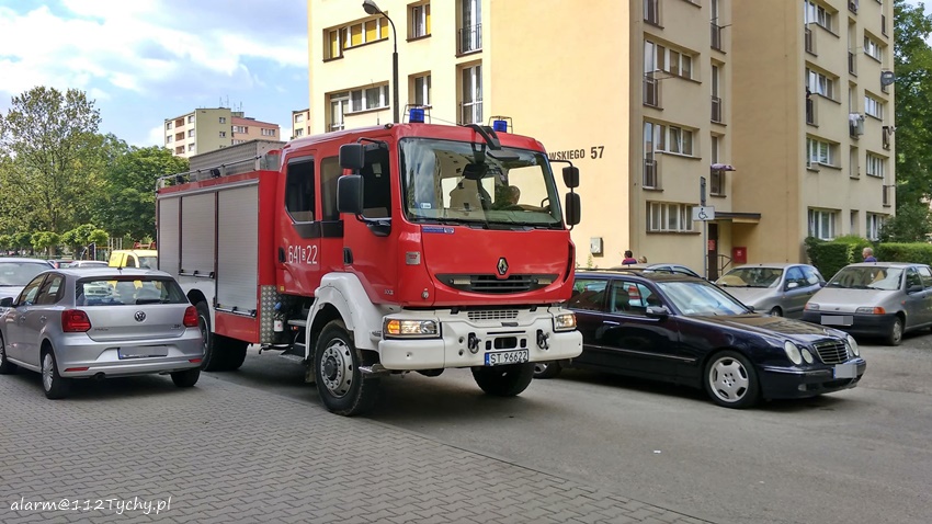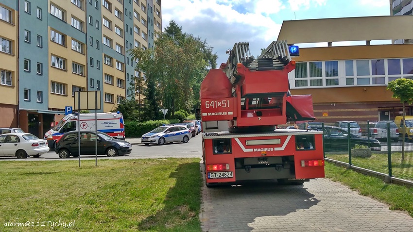 7 lipca około godziny 15 dyżurni SKKM PSP Tychy i KMP Tychy otrzymali zgłoszenie, że w jednym z mieszkań w budynku wielorodzinnym przy ulicy Dąbrowskiego 57 ma znajdować się kobieta potrzebująca pomocy. Na miejsce natychmiast zadysponowane zostały zastępy JRG Tychy (GBA, SD), patrol Policji i ZRM. Po dotarciu na miejsce strażacy dostali się do wskazanego mieszkania przez uchylone okno. Po wejściu do mieszkania zgłoszenie zostało potwierdzone. Kobieta trafiła pod opiekę ratowników medycznych i została przewieziona do szpitala. Po około czterdziestu minutach działania służb ratunkowych zostały zakończone.