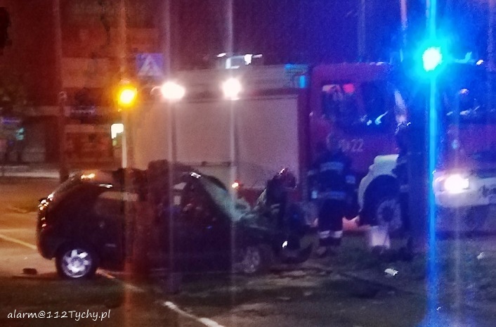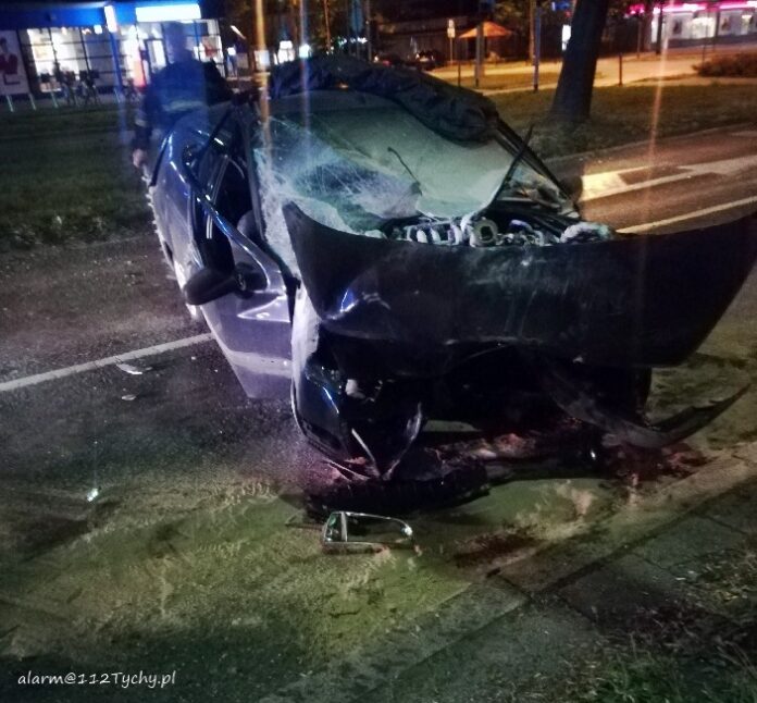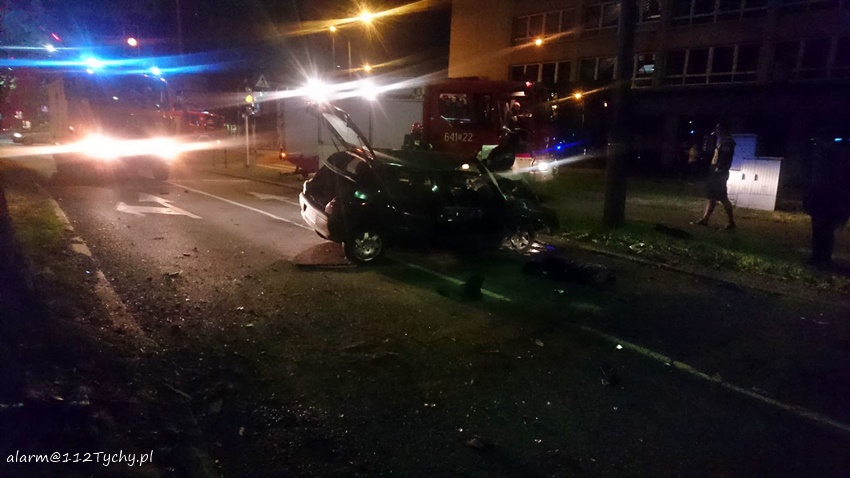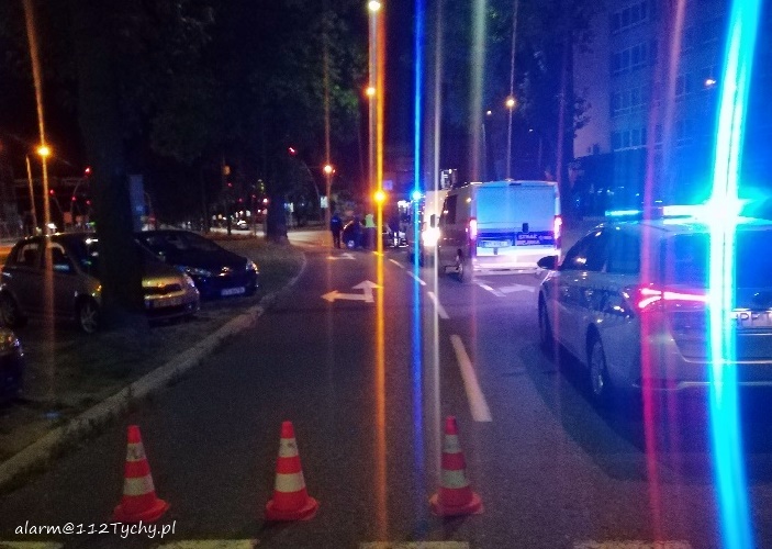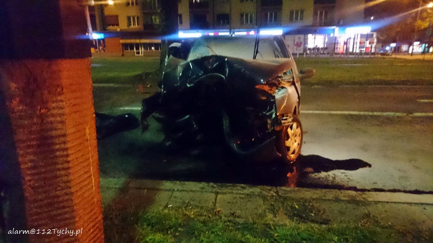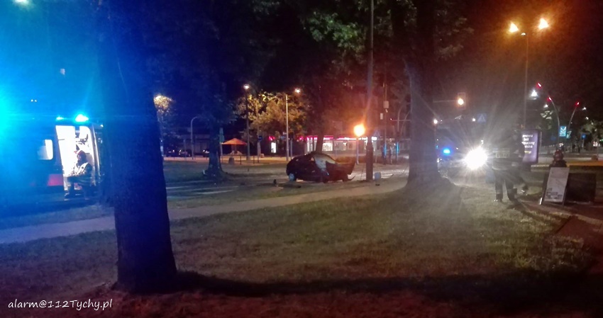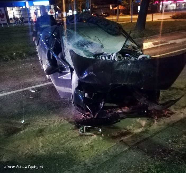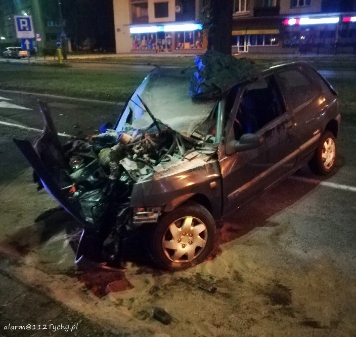 8 lipca kilka minut po północy dyżurni tyskiej Policji i Straży Pożarnej otrzymali zgłoszenie o zdarzeniu drogowym na al. Niepodległości na wysokości Urzędu Skarbowego. Ze zgłoszenia wynikało, że samochód osobowy Renault Clio uderzył w przydrożne drzewo i zablokował pasy ruchu w kierunku ul. Grota – Roweckiego. Na miejsce natychmiast zadysponowane zostały zastępy JRG Tychy (GBA, GCBARt, SCRt), patrole Policji i Straży Miejskiej oraz ZRM. Po dotarciu służb na miejsce zgłoszenie potwierdziło się. Pojazdem podróżowało trzech mężczyzn w wieku około 20 lat. – opuścili oni wrak przed przybyciem na miejsce służb ratunkowych. Kierowca próbował uciekać pieszo, jednak po krótkim pościgu został zatrzymany przez funkcjonariuszy prewencji Policji. Wszyscy trafili pod opiekę ratowników medycznych (dwóch z nich w wieku 19 i 22 lata trafiło do szpitala na dokładniejsze badania), Kierującym samochodem został zatrzymany i przewieziony do KMP Tychy celem wykonania z nimi dalszych czynności. Jak udało nam się ustalić kierowca Renaulta podczas badania stanu trzeźwości wydmuchał ponad 2 promile. Na miejsce zdarzenia wezwany został również policyjny technik kryminalistyki celem wykonania pełnej dokumentacji. Przez blisko trzy godziny w miejscu zdarzenia występowały utrudnienia w ruchu – objazd prowadził ulicami Czystą – Cyganerii do Grota Roweckiego. Trwa ustalanie dokładnych przyczyn i okoliczności tego zdarzenia.