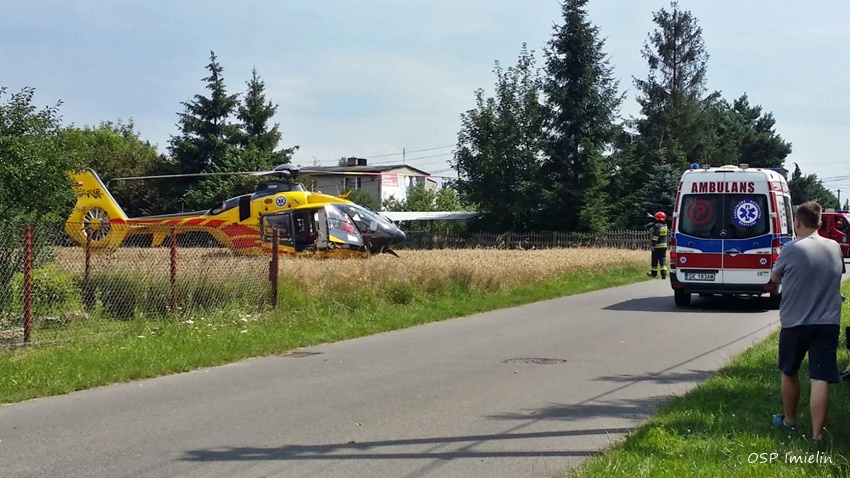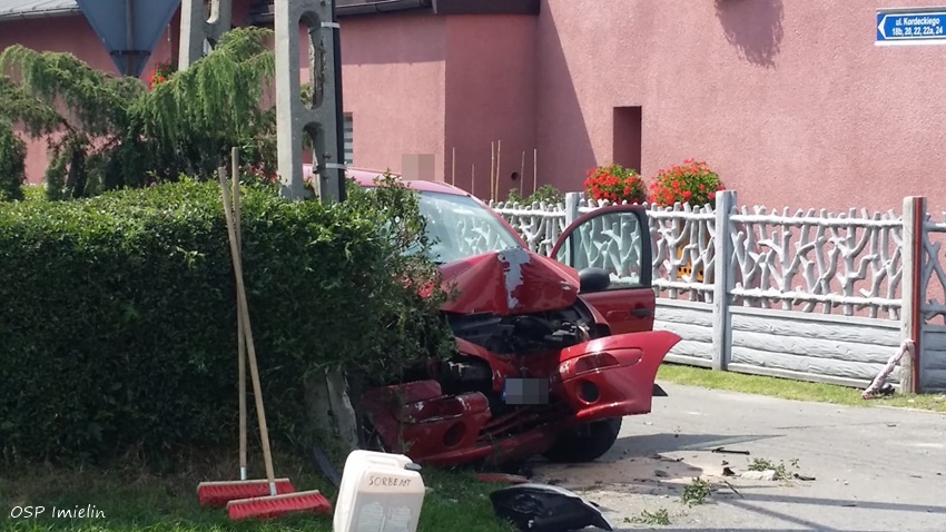 9 lipca około godziny 13.50 na ulicy Kordeckiego w Imielinie doszło do zdarzenia drogowego. Kierujący samochodem osobowym marki Citroen, 62 letni mężczyzna utracił panowanie nad swoim pojazdem i uderzył w ogrodzenie jednej z posesji, a następnie w betonową podstawę słupa energetycznego. Na miejsce zdarzenia zadysponowane zostały zastępy OSP Imielin (GLBARt), OSP Chełm Śląski (GLBARt), JRG Tychy (GBA, GCBARt, SCRt), ZRM oraz patrol bieruńskiej Policji. Miejsce zdarzenia zostało zabezpieczone przez strażaków i policjantów, a kierowca trafił pod opiekę ratowników medycznych. Policjanci przeprowadzili badanie stanu trzeźwości kierującego – badanie wykazało około 0,7mg/l, co daje prawie 1,5 promila. Z nieoficjalnych informacji mężczyzna podczas badań na miejscu miał stracić przytomność. W związku z podejrzeniem urazu kręgosłupa będący na miejscu ratownicy podjęli decyzję o konieczności transportu mężczyzny do szpitala drogą lotniczą. W tym celu na miejsce wezwany został śmigłowiec LPR – Ratownik 4 z bazy w Gliwicach. Przez blisko dwie godziny ruch w miejscu zdarzenia był zablokowany. Dodatkowo na miejsce wezwane zostało pogotowie energetyczne celem zabezpieczenia uszkodzonego słupa. Bieruńscy Policjanci prowadzą dalsze czynności mające na celu wyjaśnienie tego zdarzenia.