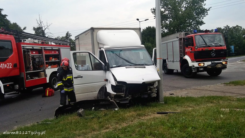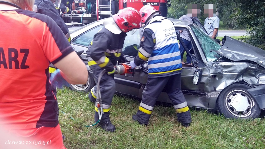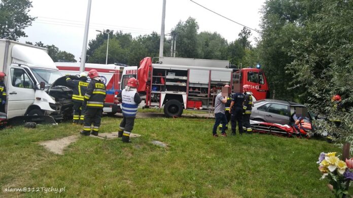 10 lipca około godziny 17.40 na skrzyżowaniu ulic Oświęcimskiej i Świerczynieckiej doszło do czołowo bocznego zderzenia osobowego VW i dostawczego Mercedesa. Dyżurni KMP Tychy, KPP Bieruń oraz SKKM PSP Tychy zostali powiadomieni o tym zdarzeniu przez formatkę z WCPR Katowice. Na miejsce zdarzenia natychmiast po otrzymaniu zgłoszenia wysłane zostały zastępy OSP Bieruń Stary (GCBA), JRG Tychy (GBA, SCRt), patrole Policji z Bierunia i Tychów oraz ZRM ze stacji w Tychach i podstacji w Bieruniu. Po dotarciu służb na miejsce zgłoszenie potwierdziło się. Samochód osobowy po otrzymaniu uderzenia w bok zatrzymał się w pobliskich krzakach, a dostawczak uderzył w latarnię uliczną. Ruch na skrzyżowaniu został wstrzymany na prawie godzinę, a następnie został wprowadzony ruch wahadłowy. Dwie osoby podróżujące osobówką trafiły do szpitala na dokładniejsze badania (pasażerka VW była uwalniana z wraku przy użyciu narzędzi hydraulicznych). Jak udało się nam ustalić winnym zdarzenia jest kierowca dostawczego Mercedesa, który jadąc ulicą Świerczyniecką nie zastosował się do znaku STOP i wjechał na skrzyżowanie z ulicą Oświęcimską uderzając w bok VW. Kierowcy pojazdów byli trzeźwi. Dodatkowo na miejsce zdarzenia został wezwany policyjny technik celem wykorzystania pełnej dokumentacji. Około godziny 19.30 uszkodzone pojazdy zostały odholowane i ruch w miejscu zdarzenia został przywrócony. Tyscy Policjanci prowadzą dalsze postępowanie w sprawie tego zdarzenia.