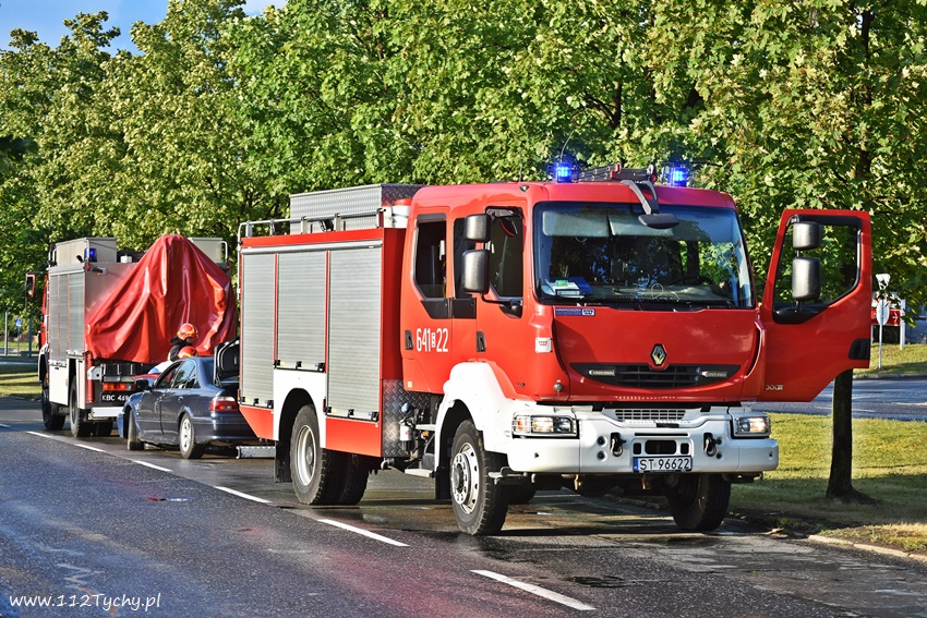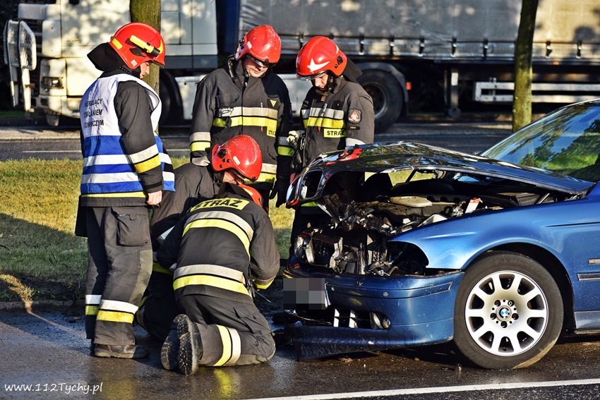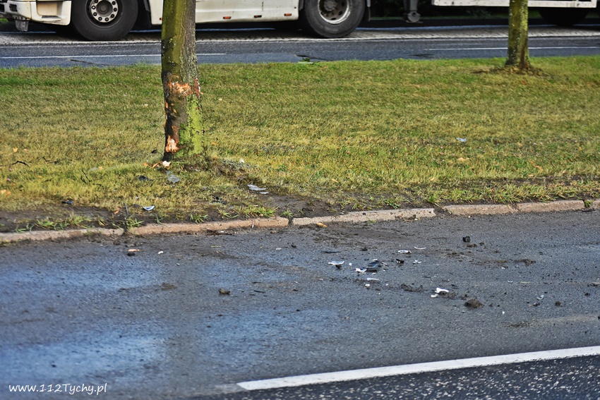 13 lipca około godziny 19 dyżurni KMP Tychy oraz SKKM PSP Tychy otrzymali zgłoszenie, że na al. Bielskiej w rejonie hipermarketów na pasie w kierunku Kobióra doszło do zdarzenia drogowego. Ze zgłoszenia wynikało, że samochód osobowy marki BMW uderzył w drzewo. Na miejsce zadysponowane zostały zastępy JRG Tychy (GBA, SCRt) patrol drogówki. Po dotarciu na miejsce zgłoszenie potwierdziło się. Miejsce zdarzenia zostało zabezpieczone, a rozbity samochód usunięty na pobliską zatoczkę. Na szczęście kierującej samochodem nic poważnego się nie stało. Strażacy dodatkowo uprzątnęli pas drogowy. Po około trzydziestu minutach działania zostały zakończone. Tyscy Policjanci prowadzą dalsze postępowanie w tej sprawie.