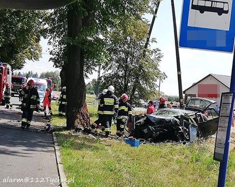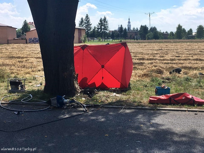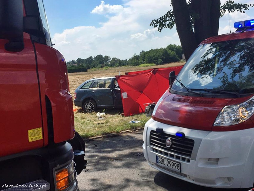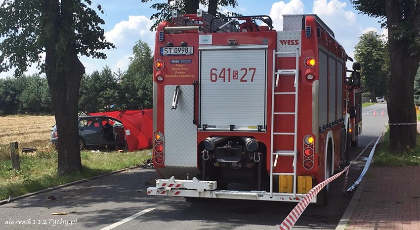 28 lipca około godziny 11.40 dyżurni SKKM PSP Tychy i KPP Bieruń otrzymali zgłoszenie o zdarzeniu drogowym na ulicy Techników w Chełmie Śląskim. Ze zgłoszenia wynikało, że samochód osobowy Skoda Fabia uderzył w drzewo. Na miejsce natychmiast zadysponowane zostały zastępy OSP Chełm Śląski (GLBARt), OSP Bieruń Nowy (SLRt, SLRr), JRG Tychy (GBA, GCABRt, SCRt), ZRM i patrole bieruńskiej Policji. Po dotarciu na miejsce zgłoszenie potwierdziło się. Miejsce zdarzenia zostało zabezpieczone i strażacy przystąpili do wykonania dostępu do poszkodowanego przy użyciu narzędzi hydraulicznych oraz udzielania pomocy poszkodowanemu. Niestety nie było szans na uratowanie młodego 23 – letniego kierowcy. Obrażenia, których doznał w wyniku uderzenia w drzewo okazały się śmiertelne w skutkach. Ruch na ulicy Techników został całkowicie wstrzymany. Na miejsce wezwany został prokurator. Zarządzona została sekcja zwłok, a wrak pojazdu został zabezpieczony na policyjnym parkingu. Bieruńscy Policjanci pod nadzorem prokuratury prowadzą dalsze postępowanie mające na celu wyjaśnienie tego tragicznego w skutkach wypadku.