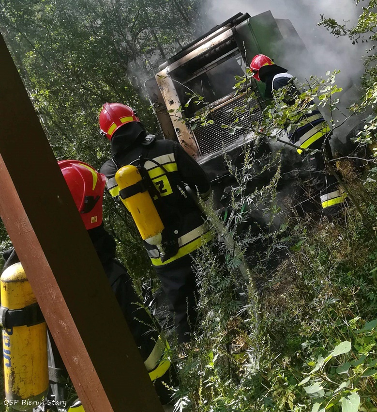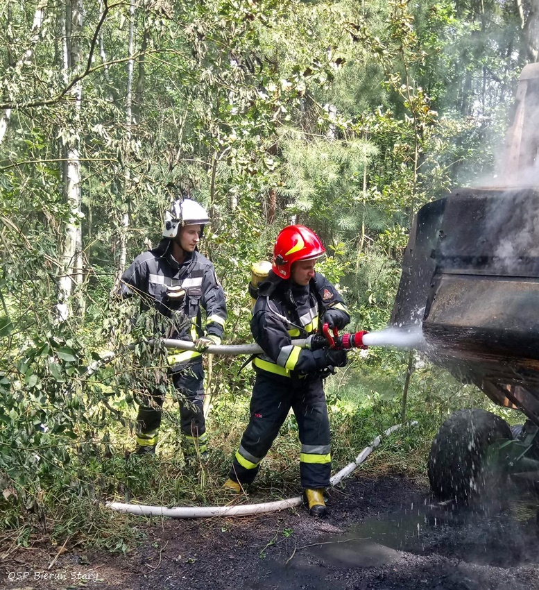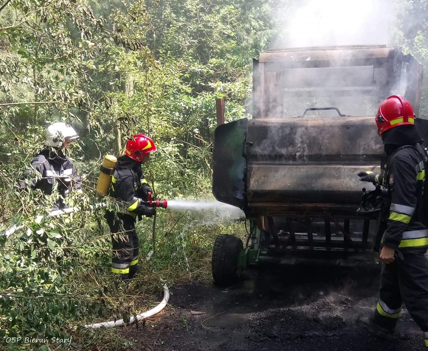 1 sierpnia około godziny 13.20 dyżurny Stanowiska kierowania Komendanta Miejskiego PSP Tychy otrzymał zgłoszenie o pożarze parsy do słomy w rejonie ulicy Kopańskiej w Bieruniu. Na miejsce natychmiast zadysponowane zostały zastępy OSP Bieruń Stary (GCBA) i JRG Tychy (GBAPr, GCBARt). Po dotarciu na miejsce zgłoszenie potwierdziło się. Prasa objęta była całkowicie pożarem – ciągnik został odczepiony i odstawiony na bezpieczną odległość. Uszkodzeniu uległa linia energetyczna biegnąca w pobliżu. Na miejsce wezwane zostało dodatkowo pogotowie energetyczne. Po około godzinie działania gaśnicze zostały zakończone. Trwa ustalanie przyczyn powstania pożaru.