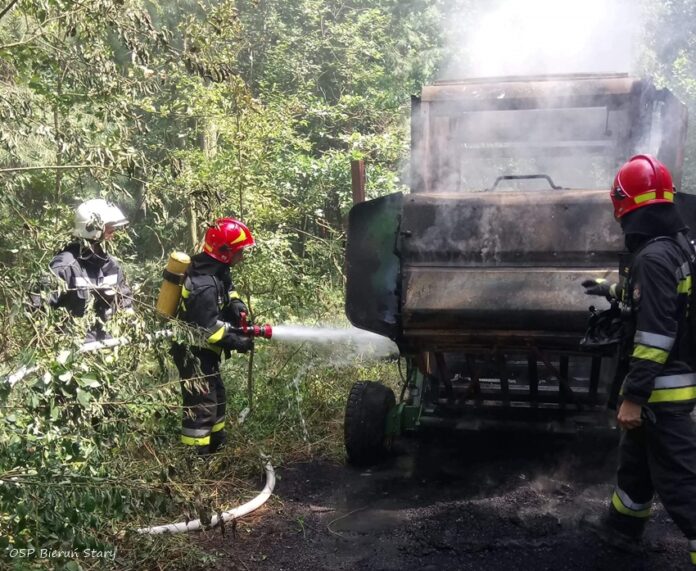 POŻAR PRASY DO SŁOMY W BIERUNIU