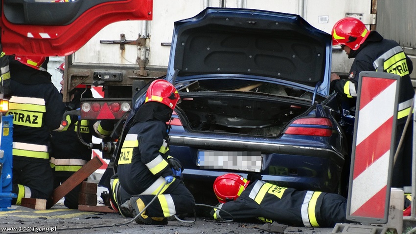 2 sierpnia około godziny 17.50 dyżurni Stanowiska Kierowania Komendanta Miejskiego PSP Tychy oraz KMP Tychy otrzymali zgłoszenie o zdarzeniu drogowym na ulicy Oświęcimskiej (DK 44) tuż za wjazdem z ulicy Beskidzkiej (DK 1) na pasie w kierunku Bierunia. Ze zgłoszenia wynikało, że samochód osobowym wbił się w naczepę samochodu ciężarowego. Na miejsce natychmiast zadysponowane zostały zastępy JRG Tychy (GBA, GBA, GCBARt, SCRt), patrole Policji oraz ZRM. Po dotarciu na miejsce zgłoszenie potwierdziło się, a ratownicy zastali osobówkę praktycznie całą wbitą pod naczepę ciężarówki. Miejsce zdarzenia zostało zabezpieczone, a ratownicy przystąpili do wykonania dostępu do poszkodowanego przy użyciu narzędzi hydraulicznych. Niestety obrażenia jakich doznał kierujący osobówka okazały się śmiertelne. Policja wyznaczyła objazd w obu kierunkach przez tereny przemysłowe. Na miejsce wezwany został policyjny technik kryminalistyki, grupa dochodzeniowo – śledcza oraz prokurator. Po przybyciu prokuratora na miejsce strażacy przystąpili do wyciągnięcia wraku pojazdu spod naczepy oraz wydobycia z niego zwłok. Po wyciągnięciu wraku spod naczepy okazało się, że śmierć poniósł około 70 – letni mężczyzna. Prokurator zarządził sekcję zwłok. Kierowca samochodu ciężarowego Renault z naczepą, w którą dosłownie wbiła się osobówka był trzeźwy. Utrudnienia w ruchu trwały do godziny 21.20. Pojazdy uczestniczące w tym wypadku zostały