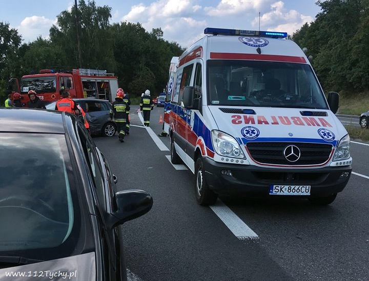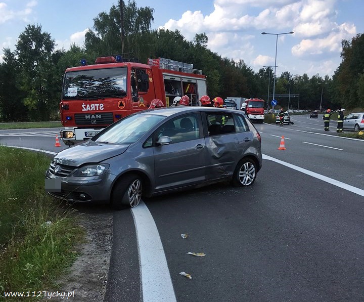wymusił pierwszeństwo na dwóch samochodach jadących w kierunku Tychów. Jadący prawym pasem zdążył wyhamować, a VW jadący lewym pasem został uderzony w bok przez Toyotę. Dwie osoby podróżujące VW – kobieta i dziecko zostały przewiezione do szpitala. Przez ponad godzinę występowały utrudnienia w ruchu. Mikołowscy Policjanci prowadzą dalsze postępowanie w sprawie tego zdarzenia.