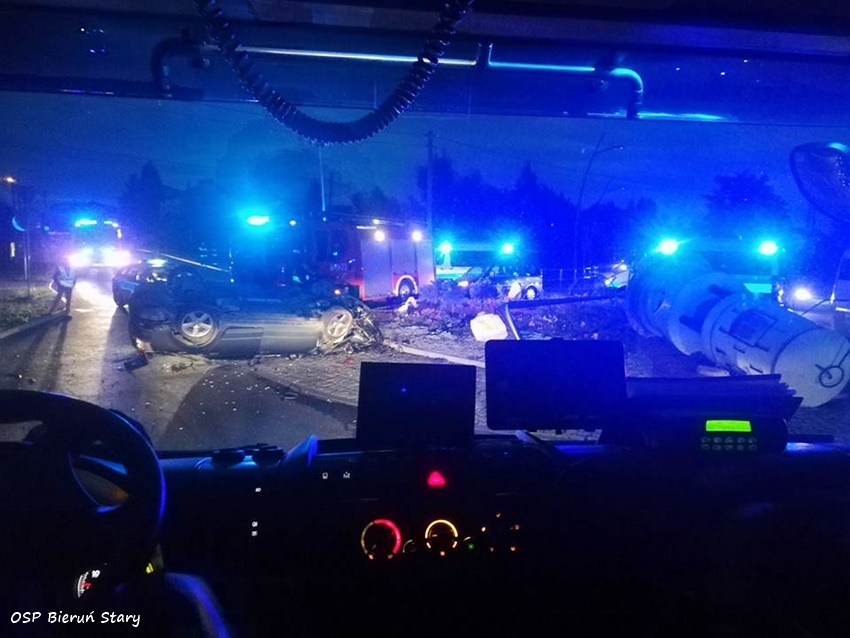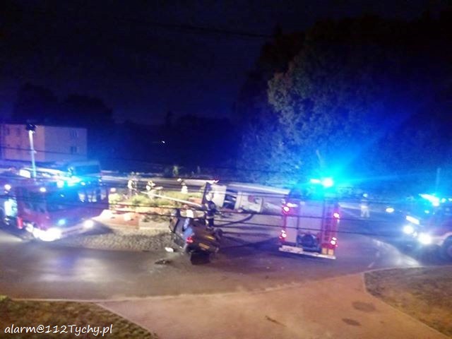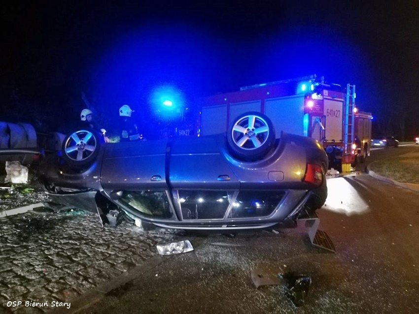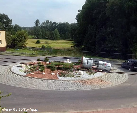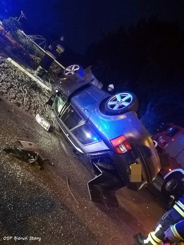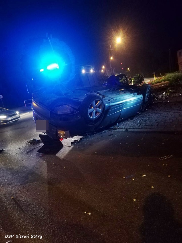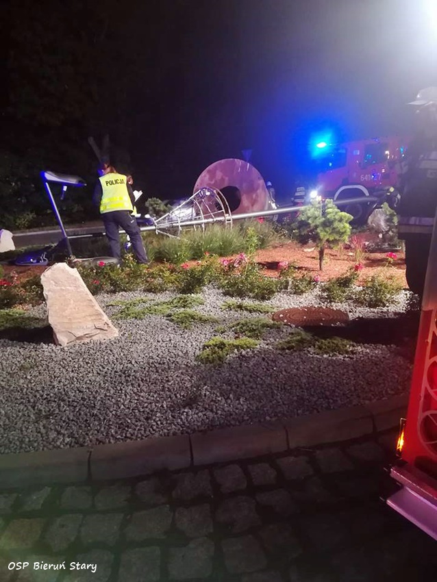 28 sierpnia około godziny 3.20 na skrzyżowaniu ulic Lędzińskiej i Pokoju (rondo) doszło do zdarzenia drogowego. Kierujący samochodem marki Audi utracił panowanie nad swoim pojazdem i wjechał na rondo przewracając zamontowana na nim ozdobną lampę górniczą oraz latarnię uliczną. W wyniku tego zdarzenia osobówka dachowała. Na miejsce zdarzenia wezwane zostały służby ratunkowe: zastępy OSP Lędziny (GBA), OSP Bieruń Stary(GBA) i JRG Tychy (GBA, GCBARt, SCRt) oraz patrole Policji i ZRM. Po przybyciu na miejsce patrolu Policji okazało się, że pojazdem podróżowały dwie osoby, a z relacji świadków wynika, że osoba która siedziała za kierownicą w chwili wypadku oddaliła się do pobliskiego lasu. Pasażer osobówki pozostał na miejscu i trafił pod opiekę ratowników medycznych, a następnie do szpitala na dokładne badania. Za kierowca pojazdu wszczęte zostały poszukiwania, do których włączone zostały dodatkowe patrole KPP Bieruń oraz OPP Katowice. Około godziny 5 funkcjonariusze odnaleźli kierowcę Audi. Podczas badania stanu trzeźwości alkomat wykazał 0,52mg/l (ponad 1 promil). Stan trzeźwości mężczyzny mógł mieć znaczący wpływ na zdarzenie drogowe. Około godziny 6 uszkodzony pojazd został odholowany przez pomoc drogową. Dodatkowo na miejsce wezwane zostało pogotowie energetyczne. Na czas trwania działań straży pożarnej oraz Policji ruch na rondzie został wstrzymany całkowicie, a następnie wprowadzony został ruch wahadłowy. Bieruńcy Policjanci prowadzą dalsze postępowanie w sprawie tego zdarzenia.