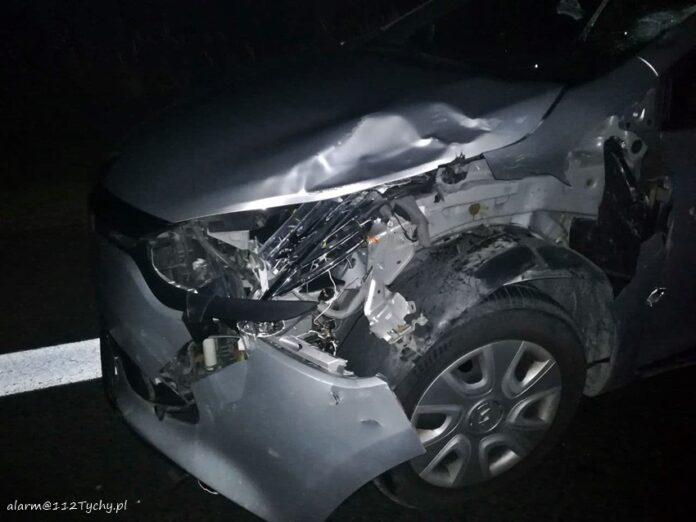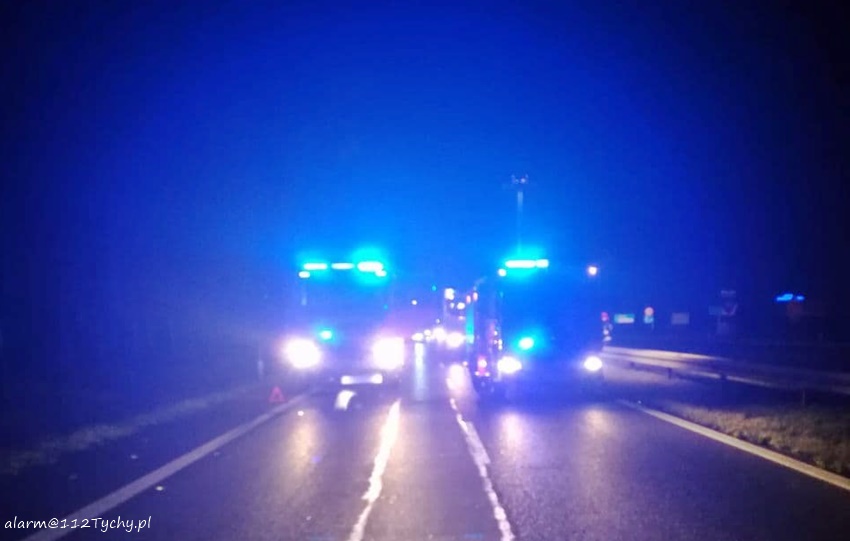 29 sierpnia około godziny 20.20 dyżurny SKKM PSP Tychy otrzymał zgłoszenie o potrąceniu pieszego na trasie DK1 za wjazdem z ulicy Sikorskiego w kierunku Pszczyny. Na miejsce natychmiast zadysponowane zostały zastępy JRG Tychy, ZRM i patrole Policji z KMP Tychy. Po dotarciu na miejsce zgłoszenie potwierdziło się, oraz okazało się, że do zdarzenia doszło na terenie Kobióra. Na miejsce dodatkowo wezwane zostały patrole KPP Pszczyna. Ruch w kierunku Pszczyny został całkowicie zablokowany, a Policja wyznaczyła objazd ulicą Sikorskiego i al. Bielską. Miejsce wypadku zostało zabezpieczone, a strażacy dodatkowo oświetlili teren działań. Ratownicy medyczni wraz ze strażakami przystąpili do udzielania mężczyźnie pomocy. Obrażenia ok. 40 letniego mężczyzny były na tyle poważne, że ratownicy zdecydowali o zadysponowaniu na miejsce latającej karetki – Ratownik 6 z bazy w Krakowie. Na czas gdy śmigłowiec znajdował się na miejscu ruch na trasie DK 1 w obu kierunkach został wstrzymany. Stan mężczyzny pogorszył się – ratownicy przystąpili do reanimacji. Niestety pomimo ich wysiłków będący na miejscu lekarz stwierdził zgon. Jak ustali pracujący na miejscu Policjanci pieszy został potrącony przez Renault Clio kierowane przez 32 letniego mężczyznę – kierowca był trzeźwy. Na miejsce wezwana została grupa dochodzeniowo – śledcza oraz prokurator. Decyzją prokuratora pojazd został zabezpieczony do dalszych czynności oraz zarządzona została sekcja zwłok. Trwa ustalanie przyczyn i okoliczności tego tragicznego zdarzenia oraz skąd pieszy znalazł się na trasie DK1. Utrudnienia w ruchu trwały kilka godzin.