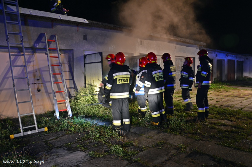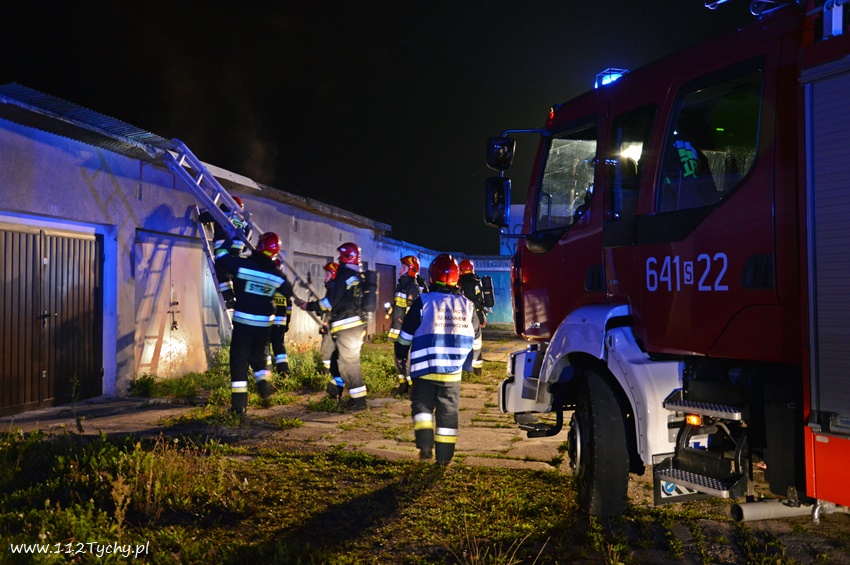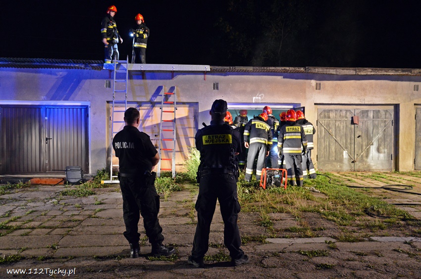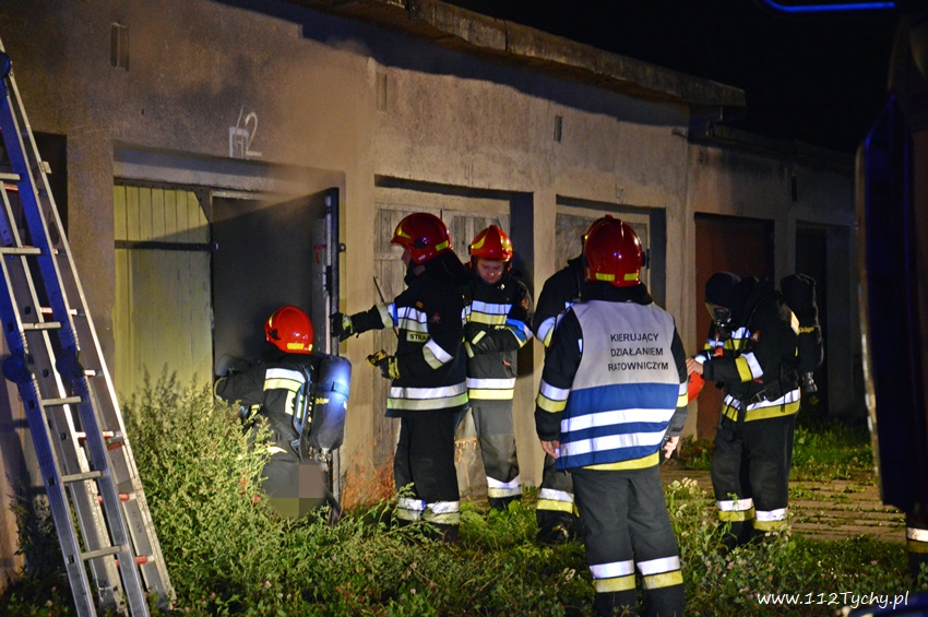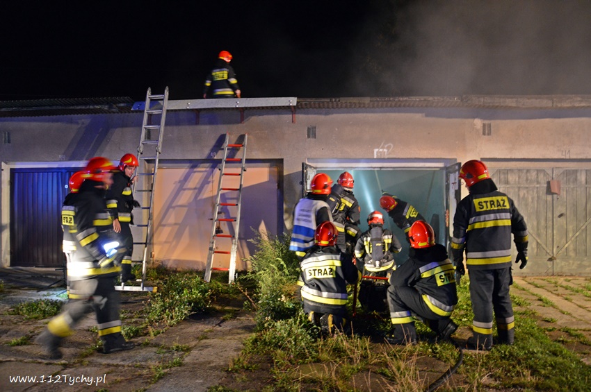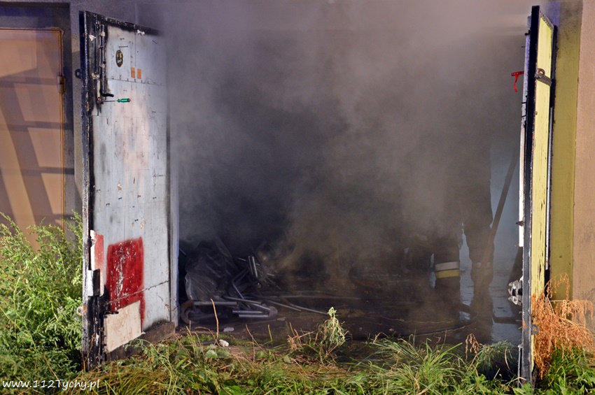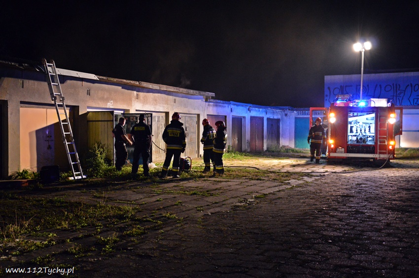 31 sierpnia około godziny 22.20 dyżurny SKKM PSP Tychy otrzymał zgłoszenie o dymie wydobywającym się z jednego z garaży przy ulicy Begonii. Na miejsce natychmiast zadysponowane zostały zastępy JRG Tychy (GBA, GBA, GCBARt) oraz mieszany patrol Policji i Straży Miejskiej Po dotarciu służb na miejsce garaż został wskazany przez zgłaszających. Z kratki wentylacyjnej wskazanego garażu wydobywał się dym. Kierujący działaniem ratowniczym podjął decyzję o konieczności otwarci garażu. Przy użyciu piły tarczowej strażacy otwarli kłódkę i dostali się do wnętrza garażu. Podany został jeden prąd wody w natarciu. Ze względu na duże zadymienie strażacy pracowali w aparatach ochrony układu oddechowego. Wewnątrz garażu nie było samochodu. Pożarem objęte były składowane elementy wyposażenia – krzesła i płyty meblowe oraz drewniane listwy i palety. Po około dwudziestu minutach pożar został opanowany i ugaszony. Garaż został oddymiony przy użyciu wentylatora. Sprawdzony został dodatkowo dach garaży. Będący na miejscu funkcjonariusz Policji powiadomił dyżurnego KMP Tychy aby ustalić właściciela garażu. Około godziny 23.30 działania strażaków na miejscu zostały zakończone. Ze wstępnych ustaleń wynika, że przyczyną pożaru było zaprószenie ognia. Tyscy Policjanci ustalają dokładne przyczyny i okoliczności powstania pożaru.