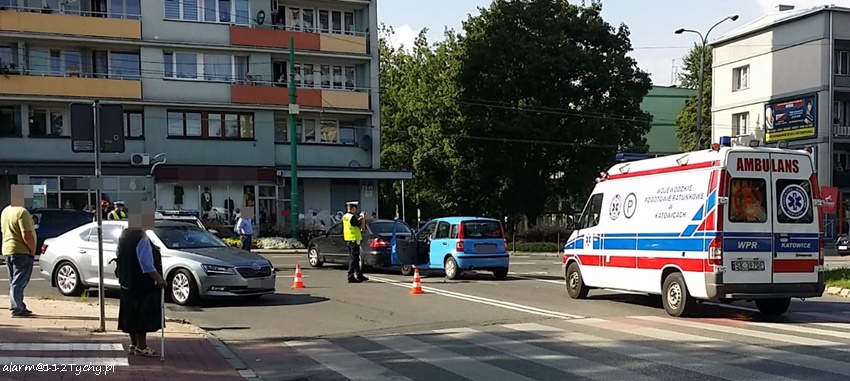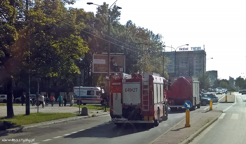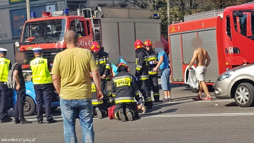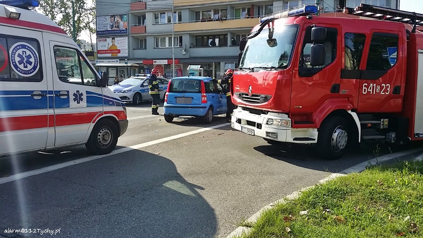 7 września około godziny 15.10 na skrzyżowaniu ulic Dąbrowskiego z Groto – Roweckiego doszło do zdarzenia drogowego. W tył Skody Superb z dużą siłą uderzył Fiat Panda. Na miejsce zdarzenia natychmiast wezwane zostały służby ratunkowe: ZRM, zastępy JRG Tychy (GBA, GCBARt, SCRt) i patrol Policji. Na czas działań ratowniczych ruch na skrzyżowaniu w kierunku al. Niepodległości został wstrzymany. Jeszcze przed przyjazdem służb ratunkowych pierwszej pomocy kierowcy i pasażerce Fiata udzielili świadkowie zdarzenia. Po dotarciu na miejsce zgłoszenie zostało potwierdzone. Ze wstępnych informacji wynika, że kierowca Fiata miał atak epilepsji. Kierowca (ok. 30 – letni mężczyzna) i pasażerka ( ok. 23 – letnia kobieta) trafili do szpitala na dokładniejsze badania. Uszkodzone pojazdy zostały usunięte na pobliski parking wzdłuż ulicy Grota – Roweckiego. Kierowcy Skody nic się nie stało. Przez około czterdzieści minut występowały utrudnienia w ruchu. Tyscy Policjanci prowadzą dalsze postępowanie w sprawie tego zdarzenia.