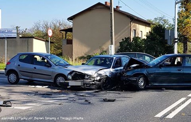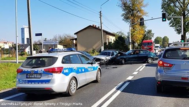 20 września około godziny 13,35 na skrzyżowaniu ulic Warszawskiej (DK 44) i Granitowej w Bieruniu doszło do zdarzenia drogowego z udziałem trzech samochodów osobowych: BMW, Opel i Peugeot. Na miejsce zdarzenia zadysponowane zostały zastępy JRG Tychy (GBA, SLRt), OSP Bieruń Nowy (GBARt), ZRM i patrole bieruńskiej Policji. Ruch w miejscu zdarzenia na czas działań ratunkowych został całkowicie wstrzymany. Z ustaleń pracujących na miejscu Policjantów wynika, że kierowca BMW wykonując manewr skrętu w lewo z ul. Warszawskiej w Granitową wymusił pierwszeństwo przejazdu na jadącym w kierunku Tychów kierującym Oplem. W wyniku tego wymuszenia doszło do zderzenia tych pojazdów, a następnie uderzyły one w oczekującego na Peugeota. W wyniku tego zdarzenia poszkodowany został kierowca Opla. Jak się okazało podczas przeprowadzania kontroli trzeźwości kierujący Oplem – 37 letni mieszkaniec Woli znajdował się w stanie po użyciu alkoholu – wynik 0,19mg/l (ok. 0,4 promila). Pozostali uczestnicy byli trzeźwi. Kierowca Opla został przewieziony do KPP Bieruń celem wykonania odpowiednich czynności , a następnie trafił do szpitala celem diagnostyki obrażeń, których doznał w wyniku zdarzenia. Kierowcy Opla dodatkowo zatrzymane zostały uprawnienia do kierowania pojazdami. Utrudnienia w ruchu trwały około czterdziestu minut. Bieruńscy Policjanci prowadzą dalsze postępowanie w sprawie tego zdarzenia.