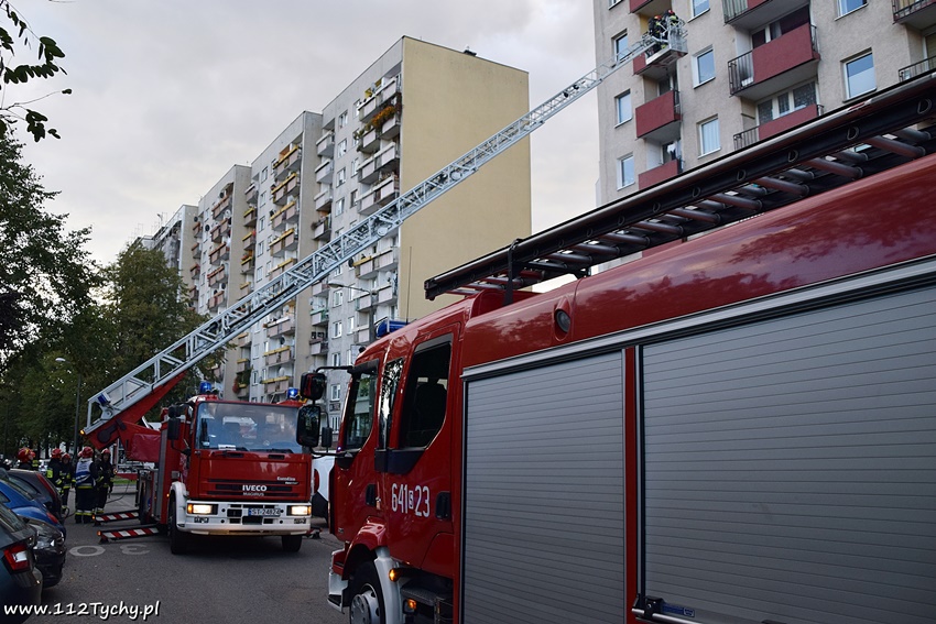 29 września około godziny 17.15 dyżurny SKKM PSP Tychy otrzymał zgłoszenie o pożarze na balkonie jednego z mieszkań w budynku wielorodzinnym przy ul. Jana Pawła II. Ze zgłoszenia wynikało, że do pożaru doszło na balkonie na czwartym piętrze. Na miejsce zgłoszenia zadysponowane zostały zastępy JRG Tychy (GBA, GBA, GCBARt, GCBA, SD) oraz patrol Policji. Po dotarciu na miejsce i sprawieniu drabiny mechanicznej strażacy dostali się na balkon gdzie płonęły szmaty i papiery. Pożar został szybko ugaszony przez podanie jednego prądu wody z linii szybkiego natarcia. W mieszkaniu do którego przynależy balkon nikogo nie było. Na miejsce zdarzenia wezwane zostało pogotowie techniczne TSM Oskard. Prawdopodobna przyczyną pożaru był niedopałek papierosa rzucony z wyższego piętra. Po około dwudziestu minutach działania zostały zakończone.