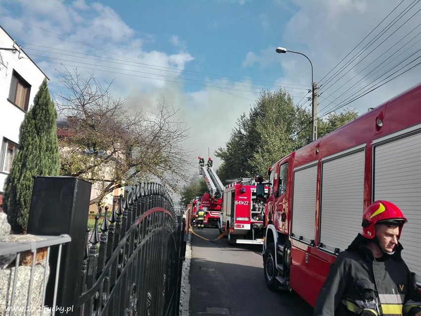 1 października około godziny 14.45 dyżurny SKKM PSP Tychy otrzymał zgłoszenie o pożarze dachu budynku jednorodzinnego przy ulicy Górniczej w Lędzinach. Na miejsce natychmiast zadysponowane zostały zastępy OSP Lędziny (GBA, GLBARt), JRG Tychy (GBA, GCBARt, SD) oraz patrol Policji. Po dotarciu na miejsce KDR poprosił o zadysponowanie ZRM oraz dodatkowych sił i środków. Na miejsce zadysponowany został zastęp JRG Tychy (GCBA). Dodatkowo na miejsce udał się również oficer operacyjny KM PSP Tychy (SOp). Jeszcze przed przyjazdem służb budynek został opuszczony przez lokatorów. Strażacy szybko poradzili sobie z zagrożeniem. Po ugaszeniu ognia podjęta została decyzja o częściowej rozbiórce poszycia dachu i przykrycie go folią. Trwa ustalanie przyczyn i okoliczności powstania pożaru. Przed godziną 20 działania na miejscu zostały zakończone.