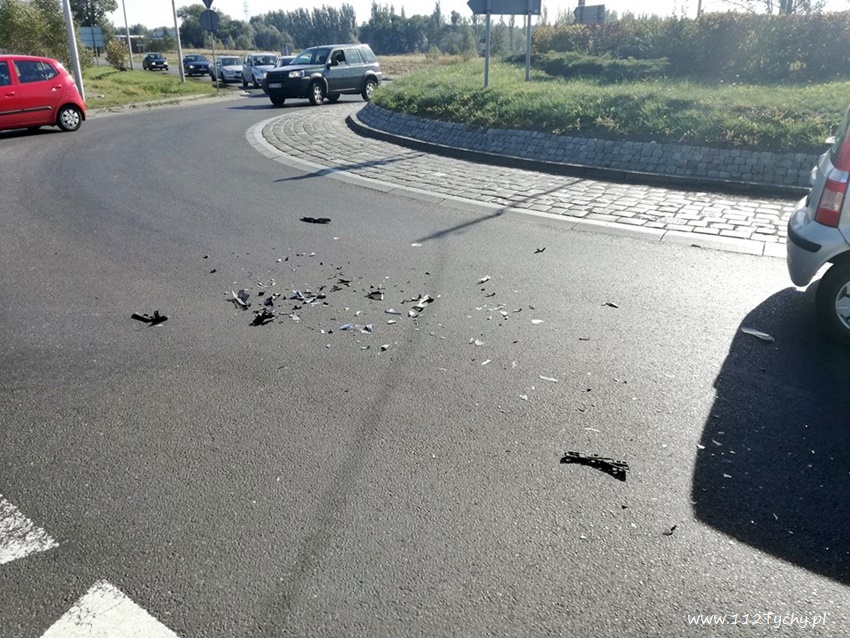 6 października około godziny 14 na skrzywianiu o ruchu okrężnym ulic Oświęcimskiej i Serdecznej doszło do zdarzenia drogowego z udziałem samochodu osobowego i ciężarówki z przyczepą. Kierujący osobowym Oplem włączając się do ruchu zagapił się i uderzył w przyczepę ciągniętą przez ciężarowego MAN-a. W wyniku zdarzenia osobowy Opel został dość mocno uszkodzony. Osobom podróżującym pojazdami nic się nie stało. Kierowcy pojazdów podjęli decyzję o spisaniu oświadczenia i nie wzywaniu na miejsce Policji. Dodatkowo na miejsce wezwany został zastęp JRG Tychy (GBA) celem uprzątnięcia drogi z elementów rozbitego Opla. Uszkodzone pojazdy zjechały ze skrzyżowania aby nie tamować ruchu.