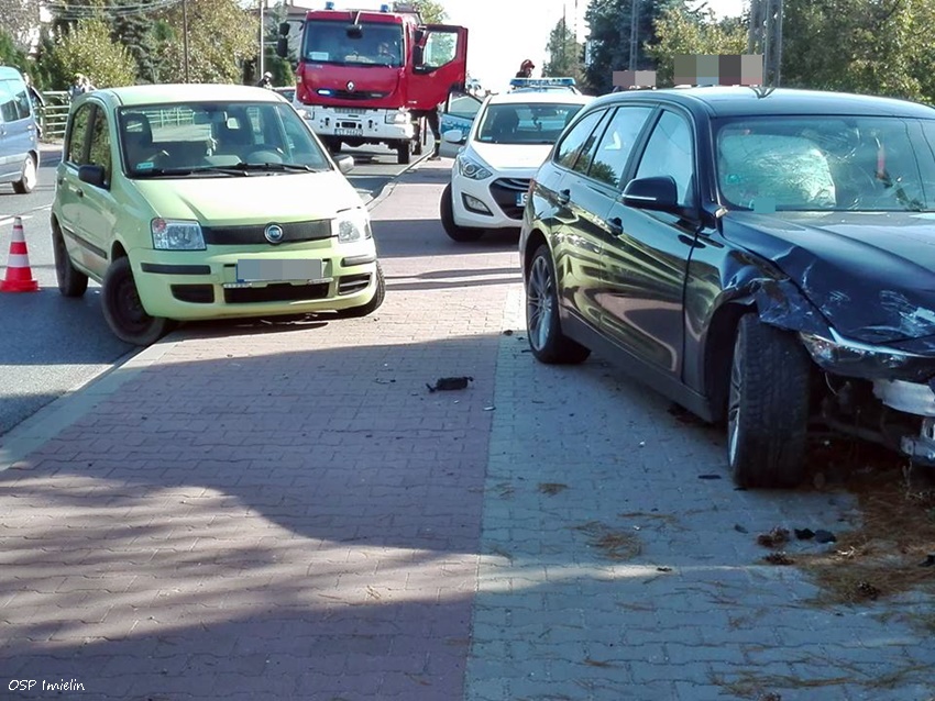 6 października około godziny 14.25 dyżurni KPP Bieruń i SKKM PSP Tychy otrzymali zgłoszenie o zderzeniu dwóch samochodów osobowych w Imielinie przy ul. Imielińskiej. Na miejsce natychmiast zadysponowane zostały ZRM, zastępy OSP Imielin (GLBARt), JRG Tychy (GBA, GCBARt, SCRt) i patrole bieruńskiej Policji. Po dotarciu na miejsce zgłoszenie potwierdziło się. W zdarzeniu brały udział Fiat Panda i BMW. Kierowca BMW (ok. 30 letni mężczyzna) został przewieziony do szpitala w Tychach na dalszą diagnostykę (podejrzenie urazu ręki i żeber). Kierującej Fiat-em nic się nie stało. Na czas działań ratunkowych oraz wykonania dokumentacji przez Policjantów ruch w miejscu zdarzenia odbywał się wahadłowo. Bieruńscy Policjanci prowadzą dalsze postępowanie w sprawie tego zdarzenia. Działania na miejscu zostały zakończone około godziny 16.50.