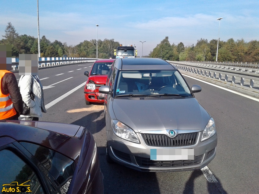 6 października około godziny 9 na ulicy Oświęcimskiej (DK 44) nad trasą DK 1 w kierunku Bierunia doszło do zdarzenia drogowego z udziałem trzech pojazdów. Na miejsce zdarzenia zadysponowane zostały wszystkie służby ratunkowe: ZRM ,patrol Policji oraz zastępy JRG Tychy (GBA, SCRT). Jeden pas w kierunku Bierunia w miejscu zdarzenia został wyłączony z ruchu. W zdarzeniu brały udział Ford, Skoda i Fiat. Ze wstępnych ustaleń pracujących na miejscu Policjantów wynika, że kierująca Fiatem nie zachowała należytej odległości od poprzedzającego pojazdu (Skoda) i najechał na jej tył. W wyniku uderzenia Skoda uderzyła w poprzedzającego Forda. Na szczęście osobom podróżującym samochodami nic się nie stało. Przez blisko godzinę ruch był utrudniony. Uszkodzony Fiat został odholowany przez pomoc drogową. Uszkodzenia pozostałych pojazdów nie były tak poważne. Tyscy Policjanci prowadzą dalsze postępowanie w tej sprawie.