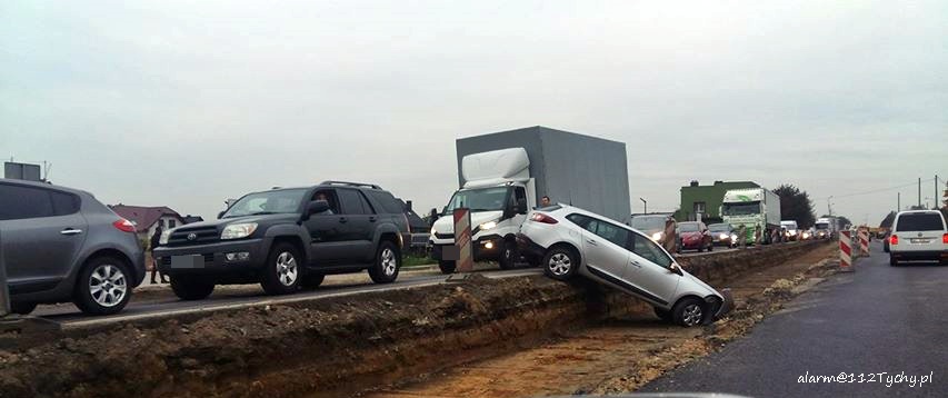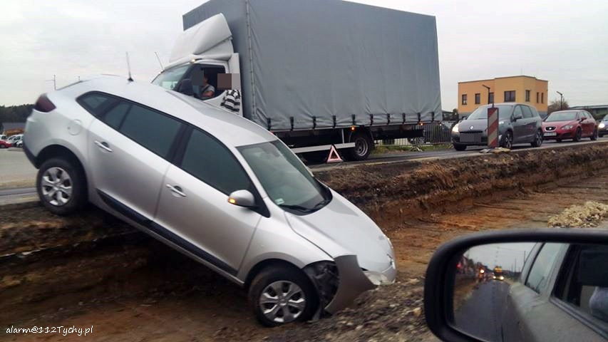 8 października po godzinie 6 na ulicy Oświęcimskiej (DK 44) na jej remontowanym odcinku doszło do zdarzenia drogowego. Samochód osobowy zjechał ze skarpy i zawisł. Na wezwany został patrol Policji i holownik pomocy drogowej. Z ustaleń pracujących na miejscu Policjantów wynika, że kierujący Renault Megane 32 – letni mieszkaniec Sosnowca wyjeżdżając z jednej z posesji nie zastosował się do znaku nakazu skrętu w prawo i wykonał manewr skrętu w lewo doprowadzając do zdarzenia. Za zaistniała sytuacje został pouczony, a uszkodzony samochód został odholowany przez pomoc drogową. Przez około godzinę w miejscu zdarzenia występowały utrudnienia w ruchu.