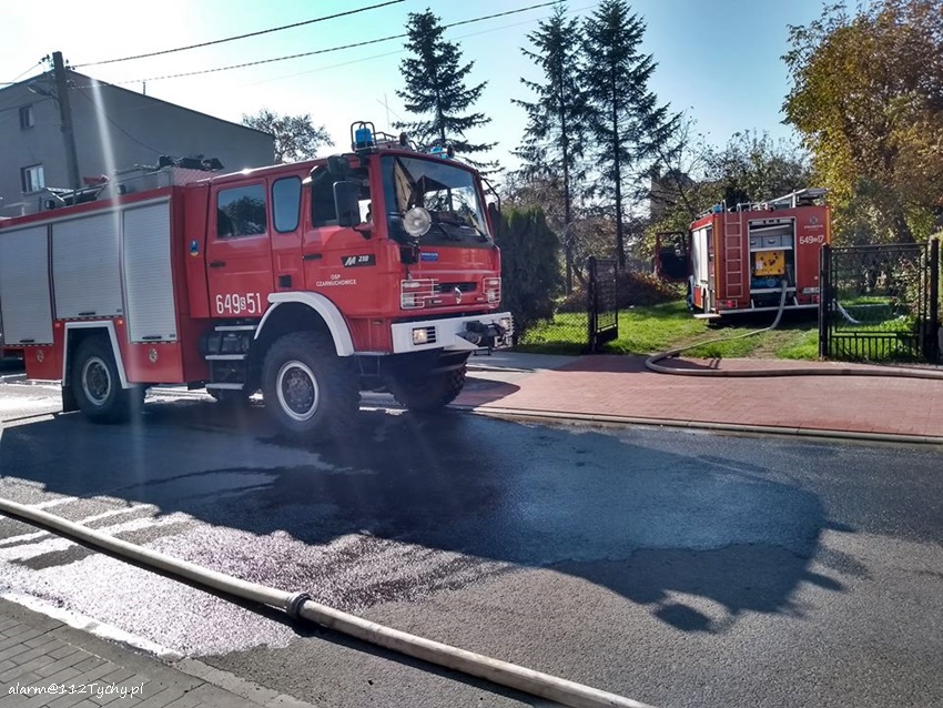 11 października około godziny 11.30 dyżurny SKKM PSP Tychy otrzymał zgłoszenie o pożarze przydomowego warsztatu samochodowego na ulicy Remizowej w Bieruniu. Na miejsce natychmiast zadysponowane zostały zastępy OSP Bieruń Nowy (GBARt, GCBA), OSP Czarnuchowice (GBA), JRG Tychy (GBAPr, GBA, GCBARt) oraz patrol bieruńskiej Policji. Po dotarciu na miejsce KDR poprosił o dodatkowe SiŚ. Zadysponowane zostały ciężkie samochody gaśnicze z OSP Bieruń Stary i OSP Chełm Śląski. Pożarem objęty był przydomowy warsztat samochodowy, motocykle się w nim znajdujące oraz znajdujący się przed nim samochód osobowy (Seat). Warsztat i samochód spłonęły doszczętnie. Nadpalona została również ściana sąsiadującego budynku jednorodzinnego. Po około trzydziestu minutach sytuacja została opanowana. Przyczyny i okoliczności powstania pożaru ustali biegły z zakresu pożarnictwa. Na czas działań gaśniczych ruch na ulicy Remizowej został całkowicie wstrzymany. Działania zastępów na miejscu trwały blisko dwie godziny.