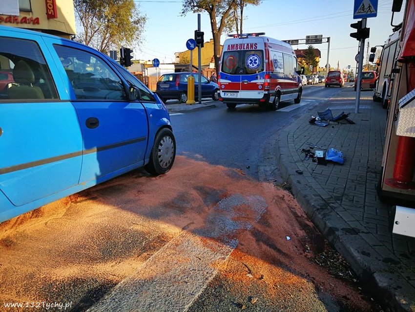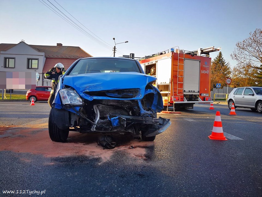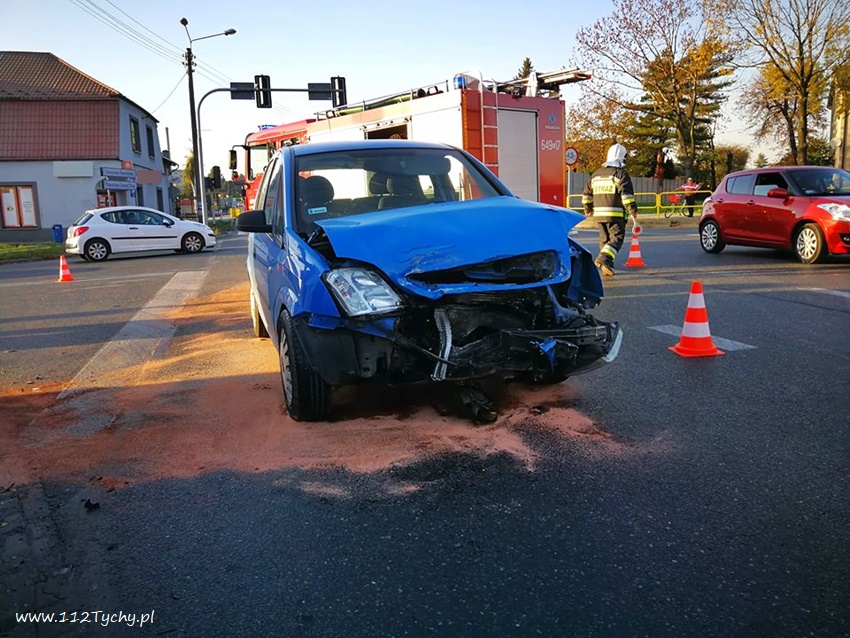 15 października około godziny 16.15 dyżurni SKKM PSP Tychy i KPP Bieruń otrzymali zgłoszenie o zdarzeniu drogowym na skrzyżowaniu ulic Warszawskiej (DK 44) i Wawelskiej (DW 934). Ze zgłoszenia wynikało, że doszło tam, do czołowo bocznego zderzenia dwóch samochodów osobowych. Na miejsce natychmiast zadysponowane zostały ZRM, patrol bieruńskiej Policji oraz zastępy OSP Bieruń Nowy (GBARt) i JRG Tychy (GBA, SCRt). Po dotarciu na miejsce zgłoszenie potwierdziło się, a jeden z pojazdów po uderzeniu w bok zjechał z drogi i zatrzymał się przy ogrodzeniu pobliskiej posesji. Dwie osoby podróżujące pojazdami trafiły pod opiekę ratowników medycznych. W miejscu zdarzenia wprowadzony został ruch wahadłowy – kierowany przez strażaków. Z ustaleń pracujących na miejscu Policjantów wynika, że winnym zdarzenia jest kierowca Opla, który wjeżdżając na skrzyżowanie z ulicy Wawelskiej nie ustąpił pierwszeństwa kierowcy Forda doprowadzając do zdarzenia. Działania strażaków na miejscu polegały dodatkowo na jego zabezpieczaniu, usunięciu uszkodzonego pojazdu ze skrzyżowania oraz neutralizacji plamy płynów eksploatacyjnych. Utrudnienia w ruchu trwały ponad godzinę. Bieruńscy Policjanci prowadzą dalsze czynności w sprawie tego zdarzenia.