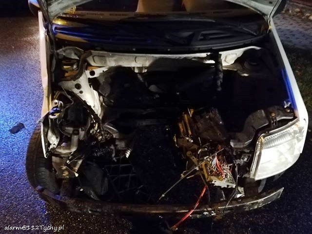 20 października około godziny 20.05 dyżurny SKKM PSP Tychy otrzymał zgłoszenie o zdarzeniu drogowym w Bieruniu przy ulicy Jagiełły. Ze zgłoszenia wynikało, że samochód osobowy Fiat miał uderzyć w przydrożne drzewo. Na miejsce natychmiast zadysponowane zostały zastępy OSP Bieruń Nowy (GBARt), JRG Tychy (GBA, SCRt), ZRM i patrole bieruńskiej Straży Miejskiej oraz Policji. Po dotarciu na miejsce zgłoszenie potwierdziło się. Ze wstępnych ustaleń pracujących na miejscu Policjantów wynika, że z niewyjaśnionych przyczyn kierowca Fiata utracił panowanie nad swoim pojazdem i uderzył w drzewo. Siła uderzenia wyrwała silnik z pojazdu, który znajdował się około 20m od niego. Kierowca trafił pod opiekę ratowników medycznych. Około godziny 21 rozbity pojazd został usunięty na pobocze. Funkcjonariusze bieruńskiej Straży Miejskiej byli pierwsi na miejscu zdarzenia. Miejsce zostało przez nich zabezpieczone, a następnie podjęli oni ręczną regulację ruchem. Bieruńscy Policjanci prowadzą dalsze postępowanie w sprawie tego zdarzenia.