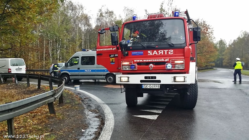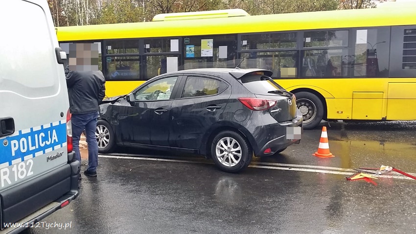 25 października około godziny 10.40 na ulicy Boya – Żeleńskiego przy zjeździe na trasę DK 86 doszło do zdarzenia drogowego. Kierowca dostawczego VW nie zachował ostrożności i wykonując manewr skrętu w lewo zajechał drogę nadjeżdżającej Mazdzie. Na miejsce zdarzenia zadysponowane zostały patrole Policji KMP Katowice, KMP Tychy, ZRM oraz zastęp OSP Kostuchna (GBA). Po przybyciu na miejsce okazało się, że podróżującym pojazdami nic poważnego się nie stało. Na czas działań ruch w miejscu zdarzenia odbywał się wahadłowo. Jak się okazało podczas wykonywania czynności kierowca VW znajdował się w pod wpływem alkoholu – badanie alkomatem wykazało około 2,4 promila. Mężczyzna został zatrzymany i przewieziony do KMP celem wykonania dalszych czynności. Uszkodzone pojazdy zostały odholowane. Po około godzinie działania na miejscu zostały zakończone.