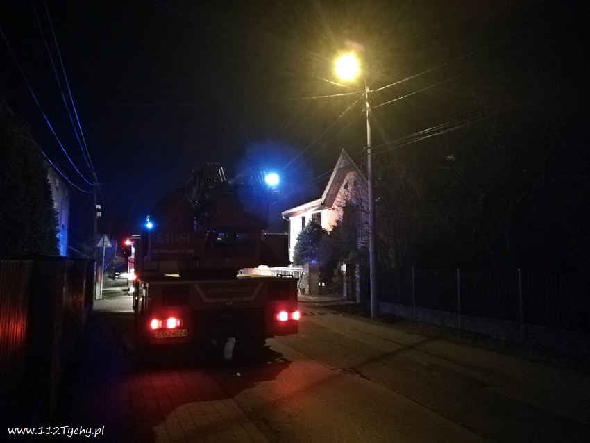 29 listopada o godzinie 20.04 dyżurny SKKM PSP Tychy otrzymał zgłoszenie o pożarze w domu jednorodzinnym przy ulicy Jeżynowej. Na miejsce zdarzenia natychmiast zadysponowane zostały zastępy JRG Tychy (GBA, GBA, SD) oraz patrol Policji. Po dotarciu na miejsce i rozpoznaniu sytuacji okazało się, że pożarem objęte jest pomieszczenie na piętrze, którego ściany obite są drewnianą boazerią, a dodatkowo ogniem zajął się częściowo dach budynku. Strażacy w aparatach ochrony układu oddechowego (duże zadymienie) weszli do budynku i podali dwa prądy wody. Pożar udało się szybko opanować i ugasić. Po ugaszeniu ognia strażacy przystąpili do oddymiania i przewietrzania budynku. Spaleniu uległo wyposażenie pomieszczenia wykończonego boazerią, około 10m2 poszycia dachu, a dodatkowo okopceniu uległa całe wyposażenie budynku, a zalaniu pomieszczenia na jego parterze. Strażacy dodatkowo musieli rozebrać częściowo poszycie dachu. Po zakończeniu działań cały budynek został dodatkowo sprawdzony kamerą termowizyjną celem wykluczenia zarzewi ognia oraz detektorem wielogazowym (tlenek węgla). Na czas działań ratowniczo – gaśniczych ruch na ulicy Jeżynowej był całkowicie wstrzymany. Mieszkaniec domu opuściła go przed przybyciem zastępów straży pożarnej. Działania na miejscu zakończone zostały około godziny 23.40. Trwa ustalanie przyczyn i okoliczności pożaru.