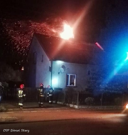 POŻAR SADZY W KOMINIE DOMU W BIERUNIU
