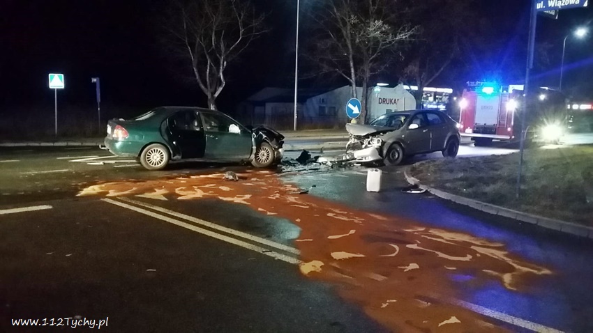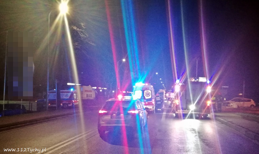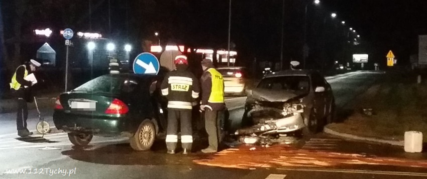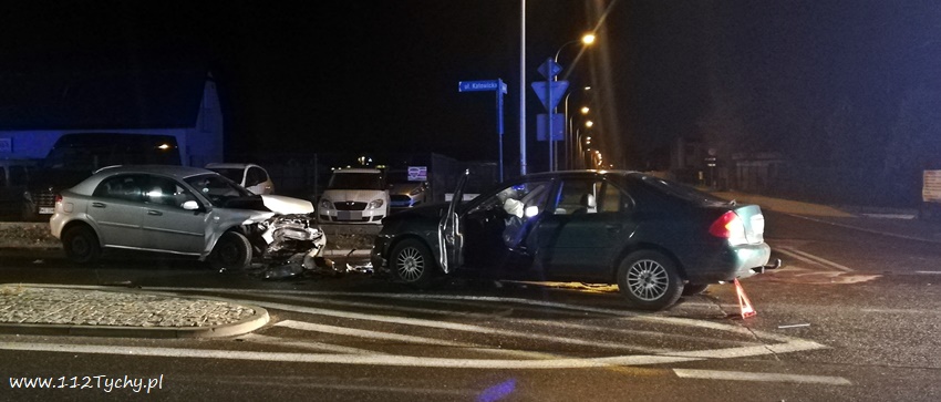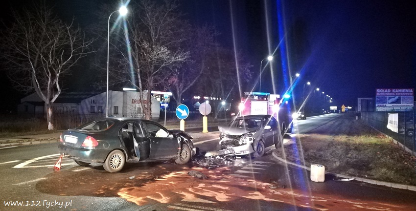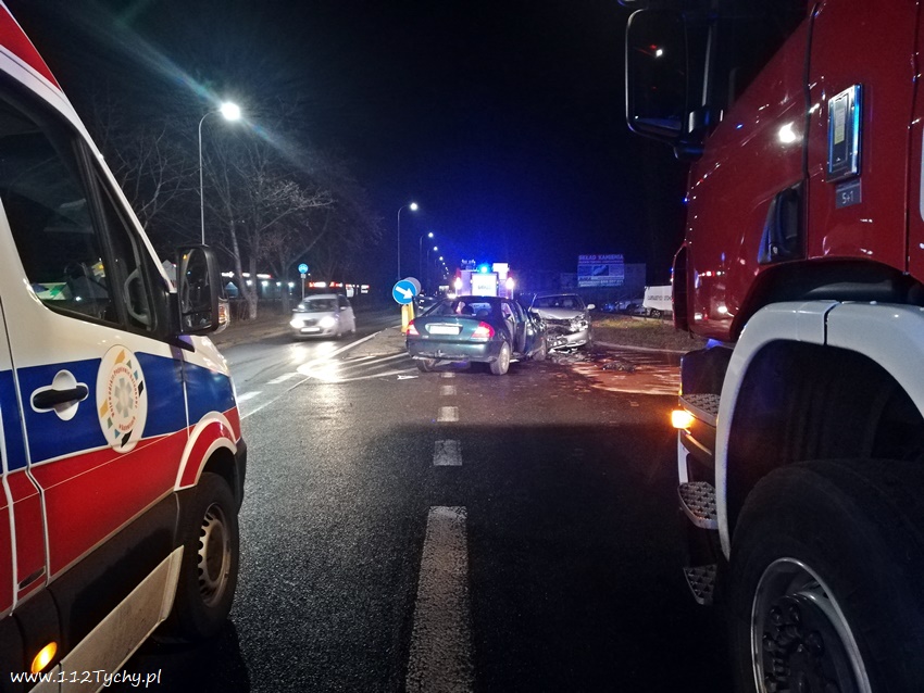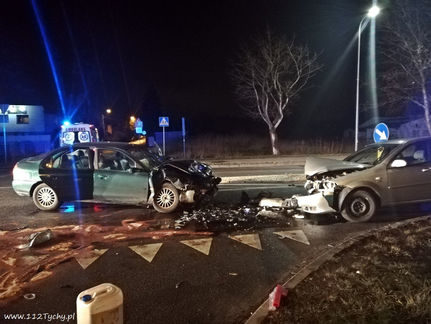 10 grudnia około godziny 21.50 na ulicy Katowickiej w rejonie skrzyżowania z ulicą Wiązową doszło do czołowego zderzenia dwóch samochodów osobowych. Na miejsce natychmiast wezwane zostały służby ratunkowe: zastępy JRG Tychy (GBA, GCBARt, SCRt), ZRM i patrole Policji. W zdarzeniu brały udział Ford i Chevrolet. Po przybyciu na miejsce zdarzenia strażacy zabezpieczyli je oraz przystąpili do udzielania poszkodowanym kwalifikowanej pierwszej pomocy. W miejscu zdarzenia wprowadzony został ruch wahadłowy. W zdarzeniu poszkodowane zostały łącznie trzy osoby podróżujące pojazdami: 2 osoby z Forda i jedna z Chevroleta. Cała trójka trafiła do szpitala. Jak wstępnie ustalili pracujący na miejscu Policjanci winnym spowodowania zdarzenia jest kierowca Chevroleta, który z niewyjaśnionych przyczyn zjechał na przeciwległy pas ruchu (uderzając jeszcze w wysepkę) doprowadził do czołowego zderzenia pojazdów. Dodatkowo na miejsce wezwany został policyjny technik kryminalistyki celem wykonania dokumentacji zdjęciowej oraz zabezpieczania śladów. Wszyscy uczestnicy zdarzenia byli trzeźwi. Działania na miejscu zakończone zostały po północy. Policjanci prowadzą dalsze czynności w sprawie tego zdarzenia.