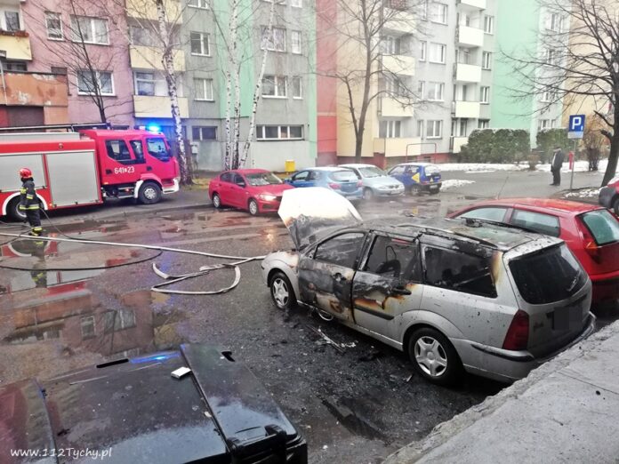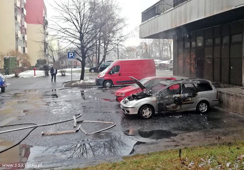 12 grudnia po godzinie 7.30 dyżurny SKKM PSP Tychy otrzymał zgłoszenie o pożarze samochodu osobowego na parkingu przy al. Bielskiej 110 w rejonie przychodni lekarskiej. Na miejsce natychmiast zadysponowane zostały dwa zastępy JRG Tychy (GBA, GBA) oraz patrol Policji. Po dotarciu na miejsce strażacy zastali rozwinięty pożar osobowego Forda. Celem ugaszenia pożaru podane zostały dwa prądy wody. Po kilkunastu minutach działania zostały zakończone. Nadpaleniu uległ również zaparkowany obok Fiat. Trwa ustalanie przyczyn i okoliczności powstania pożaru.