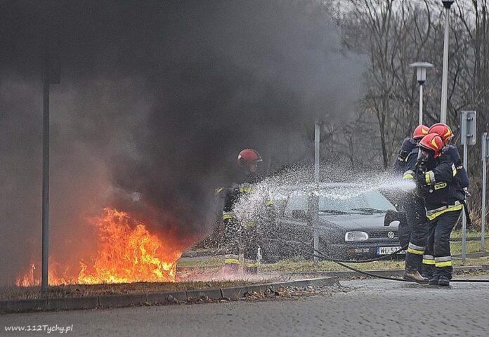 29 grudnia przed godziną 12 dyżurny SKKM PSP Tychy otrzymał zgłoszenie o pożarze samochodu osobowego na osiedlowym parkingu przy al. Bielskiej (oś. Cztery Pory Roku). Na miejsce zadysponowane zostały dwa zastępy JRG Tychy (GBA, GBA) oraz patrol Policji. Po dotarciu na miejsce strażacy zastali rozwinięty pożar komory silnika. Ze względu na duże zadymienie strażacy pracowali w aparatach ochrony układu oddechowego. Celem ugaszenia pożaru podany został jeden prąd wody w natarciu. Po kilkunastu minutach pożar został ugaszony. Spaleniu uległa komora silnika. Najprawdopodobniej do pożaru doszło w wyniku zwarcia instalacji elektrycznej. Po około godzinie działania zostały zakończone. Trwa ustalanie przyczyn i okoliczności powstania pożaru.