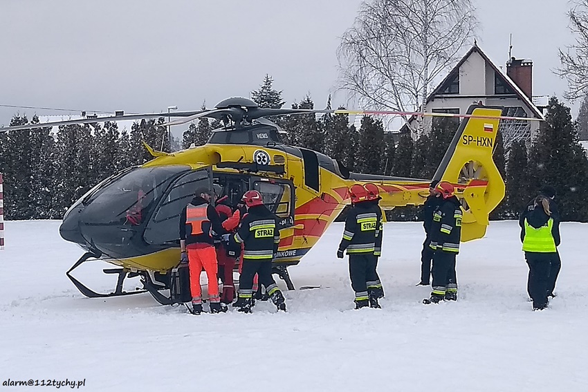 8 stycznia około godziny 12.35 dyżurny KPP Bieruń otrzymał zgłoszenie o wypadku na terenie gimnazjum w Chemie Śląskim przy ulicy Śląskiej. Na miejsce zdarzenia wysłany został patrol Policji i ZRM. Ze zgłoszenia wynikało, że na lekcji chemii doszło do wybuchu i zapłonu etanolu, w wyniku, którego poszkodowany został 15 – letni chłopak – uczeń 3 klasy gimnazjum. Po przybyciu na miejsce okazało się, że ratownicy medyczni zakwalifikowali oparzenia chłopaka na II stopień (twarz, dłonie i klatka piersiowa). Podjęta została decyzja o wezwaniu na miejsce latającej karetki, która przetransportuje poszkodowanego do szpitala dziecięcego w Katowicach Ligocie. Celem zabezpieczenia lądowiska dla śmigłowca LPR – Ratownik 4 na miejsce zadysponowane zostały dwa zastępy JRG Tychy (GBA, SLRt). Po kilkunastu minutach latająca karetka wylądowała na boisku szkolnym . ratownicy medyczni wraz ze strażakami przetransportowali poszkodowanego chłopaka do śmigłowca. Jak ustalili [pracujący na miejscu Policjanci do wypadku doszło podczas doświadczenia z etanolem, które wykonywane było przez 30 – letniego nauczyciela chemii i dwóch uczniów. Nauczyciel był trzeźwy. Policjanci prowadza dochodzenie mające na celu wyjaśnienie przyczyn i okoliczności tego wypadku.