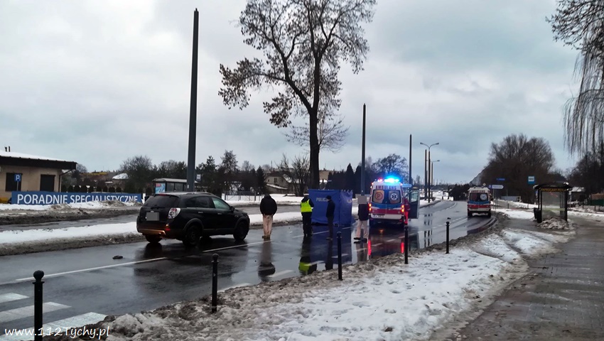 14 stycznia kilka minut przed godziną 7 rano na oznakowanym przejściu dla pieszych na ulicy Sikorskiego w rejonie pętli trolejbusowej doszło do potracenia pieszego. W miejscu zdarzenia zatrzymał się będący poza służbą funkcjonariusz WRD KMP Tychy. Powiadomił on dyżurnego KMP Tychy o zaistniałym zdarzeniu i przystąpił do zabezpieczenia miejsca zdarzenia i udzielania poszkodowanemu pierwszej pomocy. Po kilku minutach na miejscu był już ZRM i patrole Policji. Ruch w kierunku trasy DK 1 został zablokowany całkowicie, a objazd został wytyczony ulica Nad Jeziorem. Ratownicy medyczni wraz z Policjantami przystąpili do reanimacji mężczyzny. W związku z ciężkimi obrażeniami pieszego na miejsce wezwany został dodatkowy zespół ratownictwa medycznego z lekarzem. Po prawie godzinnej reanimacji i walce o życie niestety lekarz stwierdził zgon. Z ustaleń pracujących na miejscu Policjantów wynika, że kierujący Chevroletem – 43 – letni obywatel Japonii najprawdopodobniej nie zauważył znajdującego się na oznakowanym przejściu dla pieszych 57 – letniego mieszkańca Tychów. Na miejsce zdarzenia wezwany został policyjny technik, grupa dochodzeniowo – śledcza oraz prokurator. Decyzją prokuratora kierowca osobówki został zatrzymany do wyjaśnienia, jego pojazd został zabezpieczony na parkingu prokuratorskim do dalszych czynności. Ciało poszkodowanego zostało zabezpieczone i zlecona została sekcja zwłok mająca ustalić przyczynę śmierci. Utrudnienia w ruchu trwały ponad trzy godziny. Tyscy Policjanci pod nadzorem prokuratury prowadza dalsze postępowanie w sprawie tego tragicznego zdarzenia.