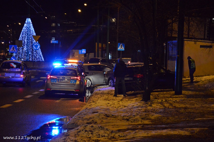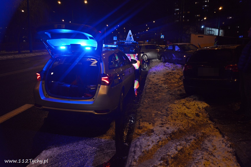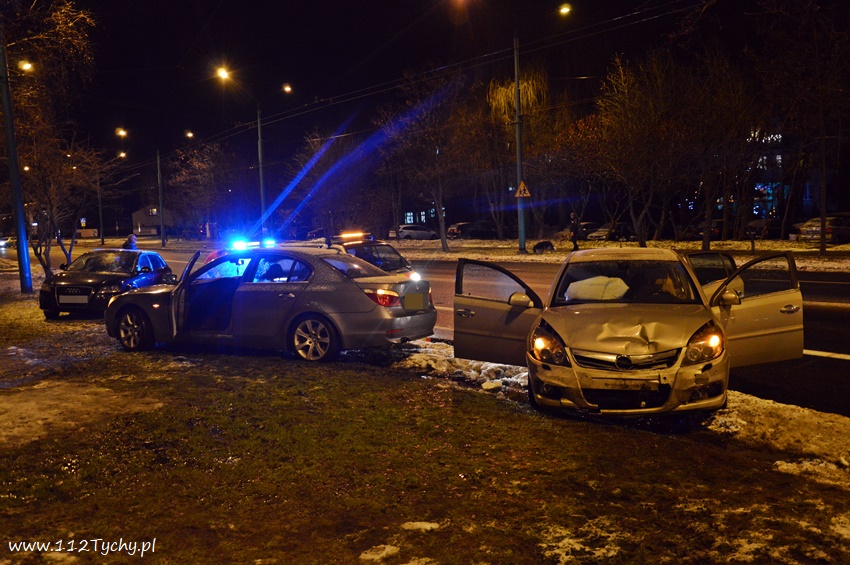 18 stycznia około godziny 17 dyżurny KMP Tychy otrzymał zgłoszenie o zdarzeniu drogowym na ulicy Harcerskiej w rejonie ronda Sublańskiego (Żwakowska – Harcerska). Na miejsce wysłany został patrol drogówki. Po dotarciu na miejsce zdarezia okazało się, że doszo tam do czołowo bocznego zderzenia Opla i BMW. Kierowcom i pasażerom samochodów na szczęście nic się nie stało. W trakcie wykonywania czynności przez Policjantów okazało się, że kierowca BMW jest pod wpływem alkoholu – badanie wykazało 0,39mg/l co daje około promila alkoholu. Kierowca został zatrzymany i przewieziony do KMP Tychy celem wykonania dalszych czynności. Z ustaleń pracujących na miejscu Policjantów i relacji świadków wynika, że kierowca BWM opuszczając rondo utracił panowanie nad swoim pojazdem i bokiem swojego pojazdu uderzył w Opla doprowadzając do zderzenia. Utrudnienia w ruchu w miejscu zdarzenia trwały blisko dwie godziny. Rozbite pojazdy zostały odholowane przez pomoc drogową. Tyscy Policjanci prowadzą dalsze postępowanie w sprawie tego zdarzenia.