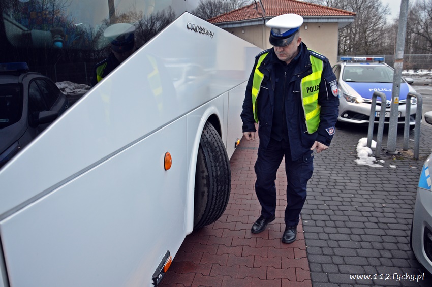 Dzisiaj policjanci tyskiej drogówki przeprowadzili kontrolę autokaru w ramach akcji „Bezpieczne Ferie 2019”. Celem takich działań jest zapewnienie bezpieczeństwa dojazdu dzieci do miejsca wypoczynku. Ponadto policjanci przeprowadzili działania profilaktyczne – rozdawali dzieciom ulotki informujące o bezpiecznych zachowaniach na stoku oraz edukacyjne kolorowanki. Okres zimowych ferii sprawia, że na drogach jest szczególnie dużo autobusów przewożących dzieci i młodzież do ośrodków wypoczynkowych. Aby wszyscy dotarli bezpiecznie na miejsce, a później szczęśliwie wrócili do domów, policjanci przeprowadzają kontrole autokarów. Jedną z takich kontroli na prośbę opiekunów policjanci z tyskiej drogówki przeprowadzili dzisiaj na ul. Borowej w Tychach. Mundurowi sprawdzili stan techniczny pojazdu, a ujawnione nieprawidłowości spowodowały, że autokar nie mógł kontynuować podróży. Dzieci, które zbierały się w międzyczasie przy autokarze, miały okazję posłuchać o bezpieczeństwie na stoku. W ramach akcie „Kręci mnie bezpieczeństwo na stoku”, tyscy policjanci rozdawali miłośnikom zimowych sportów ulotki informujące o bezpieczeństwie na nartach i desce, a także informowali o konkursie fotograficzno-plastycznym „Stok nie jest dla bałwanów”. Mając na uwadze bezpieczeństwo zarówno na drodze, jak i na stoku, najmłodsi uczestnicy ruchu drogowego otrzymali od mundurowych edukacyjne kolorowanki. Organizatorzy wyjazdów mogą nawiązać kontakt z policjantami prosząc o sprawdzenie stanu trzeźwości kierowcy lub stanu technicznego pojazdu. Zachęcamy do tego typu sprawdzeń, przecież bezpieczeństwo dzieci i młodzieży jest najważniejsze, a usterki pojazdów mogą doprowadzić do zdarzeń drogowych, a tego nikt by nie chciał. Prosimy nie pozostawiać na ostatnią chwilę zgłaszania kontroli autobusu z wyjeżdżającymi dziećmi. W Tychach, miejscem takich kontroli jest parking przy basenie na ulicy Edukacji. Prosimy odpowiednio wcześniej uzgadniać termin kontroli pod numerem: tel. 32 325 – 62-90. Przypominamy, że policjant z wydziału ruchu drogowego nie ma możliwości sprawdzenia stanu technicznego autobusu w 100 % z uwagi na brak urządzeń takich, w jakie są wyposażone stacje diagnostyczne. Zatem organizator, by mieć całkowitą pewność o sprawności autobusu, powinien poddać go badaniu technicznemu na stacji diagnostycznej.