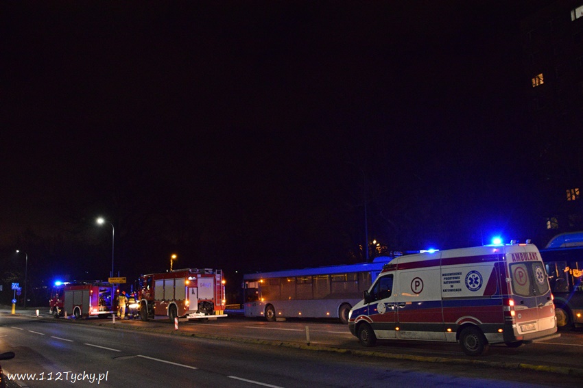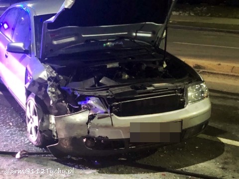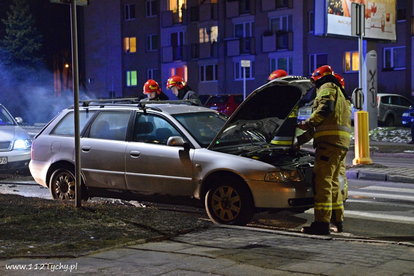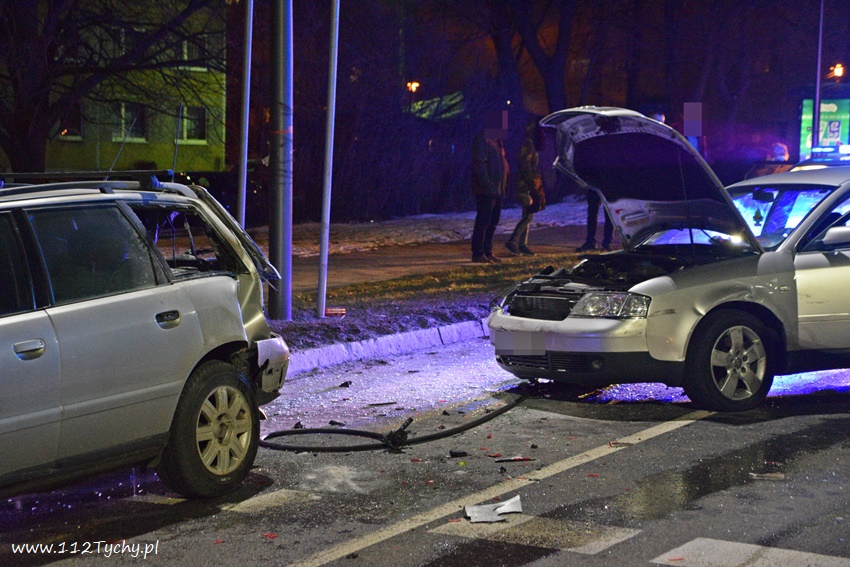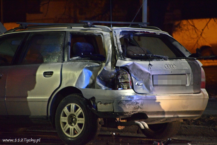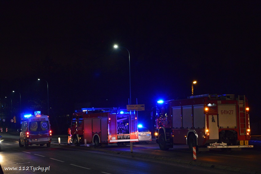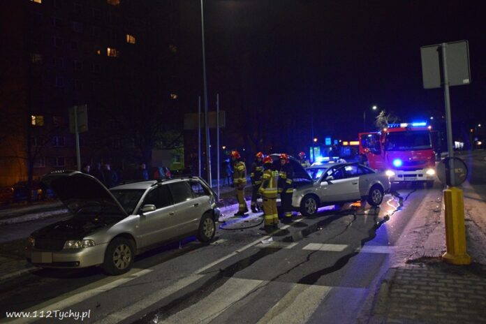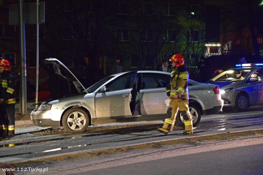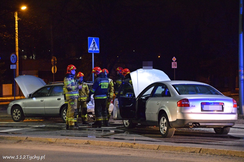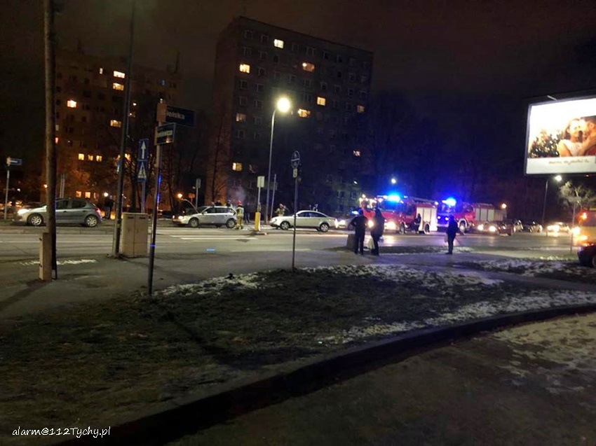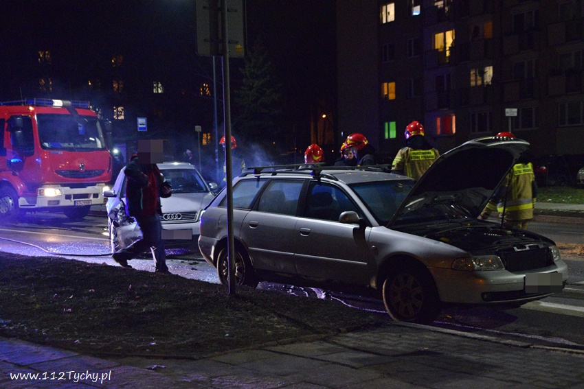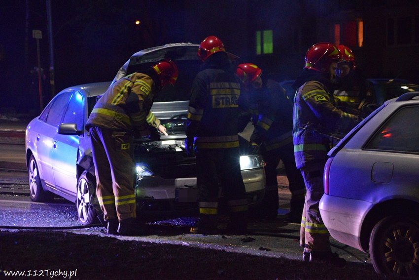 12 lutego po godzinie 21 na al. Bielskiej w rejonie skrzyżowania z ul. Starokościelną na pasie w kierunku browaru doszło do zdarzenia drogowego z udziałem dwóch samochodów osobowych marki Audi. W wyniku zderzenia jeden z pojazdów zaczął się palić. Na miejsce zdarzenia zadysponowane zostały zastępy JRG Tychy (GBA, GCBARt, SCRt) oraz patrol Policji. Osoby podróżujące pojazdami opuściły je przez przyjazdem służb. Na miejsce zdarzenia dojechał również ZRM ale na szczęście pomoc ratowników nie była potrzebna. Na pochwałę zasługuje zachowanie kierowców przejeżdżających pojazdów jak i mieszkańców pobliskich budynków wielorodzinnych, którzy pośpieszyli z gaśnicami aby zapobiec rozprzestrzenieniu się pożaru. Przybyli na miejsce strażacy zabezpieczyli miejsce zdarzenia oraz dogasili pożar. Ruch na około godzinę został całkowicie zablokowany. Jak ustalili pracujący na miejscu Policjanci do zdarzenia doszło w wyniku nie zachowania bezpiecznej odległości od poprzedzającego pojazdu. Uszkodzone pojazdy zostały odholowane przez pomoc drogową. Sprawca zdarzenia został ukarany mandatem karnym.