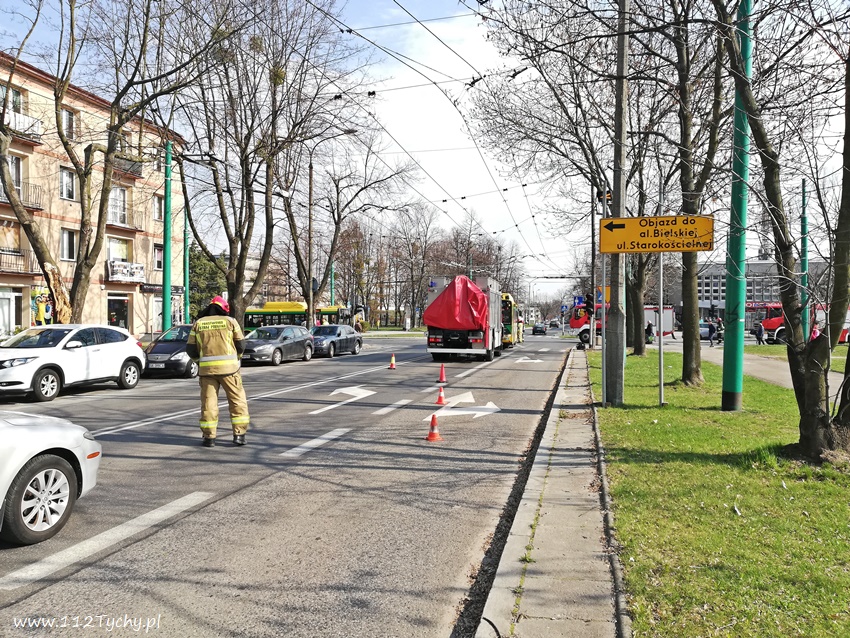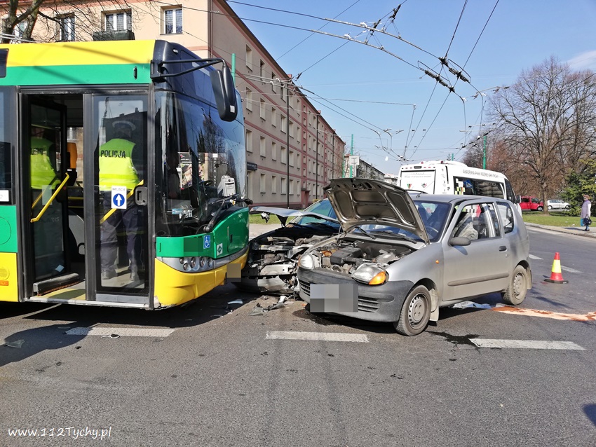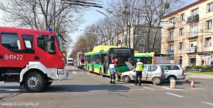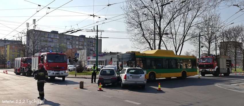 4 kwietnia około godziny 9.30 na skrzyżowaniu ulic Edukacji i Grota – Roweckiego doszło do zdarzenia drogowego z udziałem trzech pojazdów: dwóch samochodów osobowych (Fiat i Ford) oraz autobusu komunikacji miejskiej (Solaris). Na miejsce zdarzenia zadysponowane zostały wszystkie służy ratunkowe: ZRM, patrol Policji i zastępy JRG Tychy (GBA, GCBARt, SCRt). Na czas działań ratunkowych ruch na skrzyżowaniu został całkowicie wstrzymany. Jedna osoba (kierująca Fordem kobieta) została przetransportowana do szpitala na dokładne badania. Pozostałym uczestnikom zdarzenia ( w tym pasażerom autobusu i dzieciom podróżującym Fordem) nic się nie stało. Z ustaleń pracujących na miejscu Policjantów wynika, ze winnym zdarzenia jest kierujący Fiatem mężczyzna, który jadąc ulicą Grota – Roweckiego w kierunku centrum miasta nie ustąpił pierwszeństwa przejazdu kierującej Fordem, która jechała ulica Edukacji w stronę szpitala wojewódzkiego. Osobówki po zderzeniu uderzyły jeszcze w oczekujący na możliwość wjazdu na skrzyżowanie autobus komunikacji miejskiej. W chwili zdarzenia na skrzyżowaniu wyłączona była sygnalizacja świetlana. Ulica Edukacji w miejscu zdarzenia jest droga z pierwszeństwem przejazdu. Po około godzinie uszkodzone pojazdy zostały usunięte ze skrzyżowania i odholowane przez pomoc drogową, a następnie ruch został przywrócony. Policjanci WRD KMP Tychy prowadzą dalsze postępowanie w sprawie tego zdarzenia.