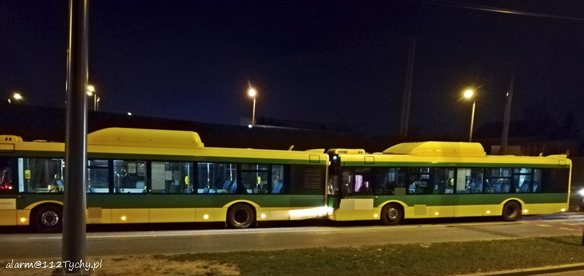 4 kwietnia po godzinie 21 na ulicy Sikorskiego w rejonie wyjazdu na trasę DK 1 na pasie w kierunku Paprocan doszło do zdarzenia drogowego z udziałem dwóch autobusów komunikacji miejskiej. W tył oczekującego na przystanku autobusu uderzył drugi pojazd. Z naszych ustaleń wynika, że kierowca autobusu, który uderzył w poprzedzający pojazd najprawdopodobniej zagapił się. Jest to kierowca z bardzo małym stażem pracy u tyskiego przewoźnika (kilak dni). W wyniku zderzenia podjazdów uszkodzeniu uległy szyby obu pojazdów oraz częściowo elementy karoserii i oświetlenia zewnętrznego pojazdów. Uszkodzone autobusy zostały usunięte po około godzinie na teren zajezdni, gdzie zostaną poddane dokładnym oględzinom i naprawom.