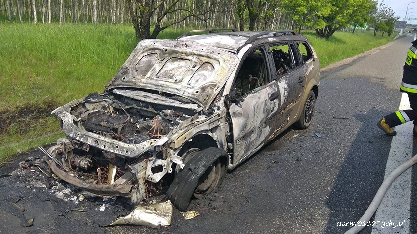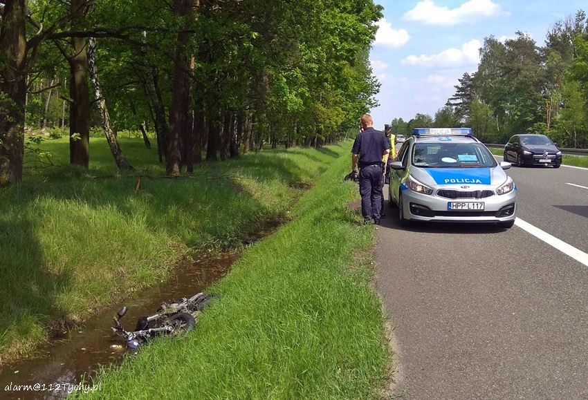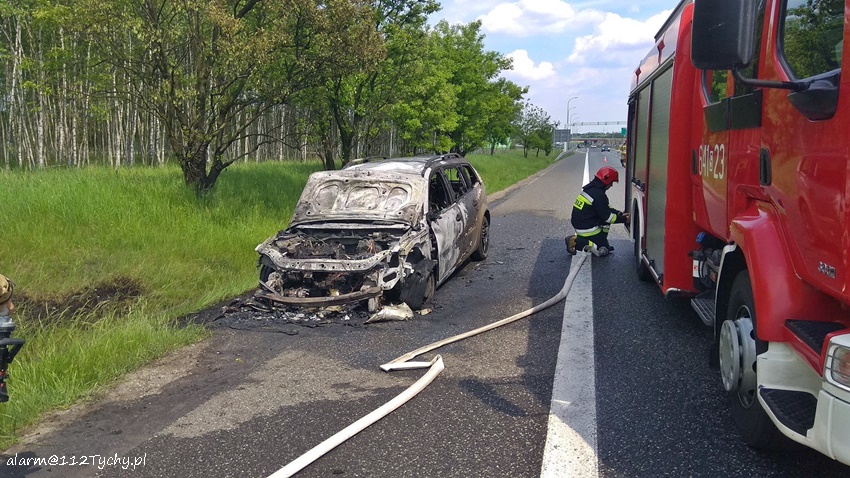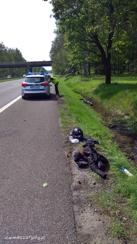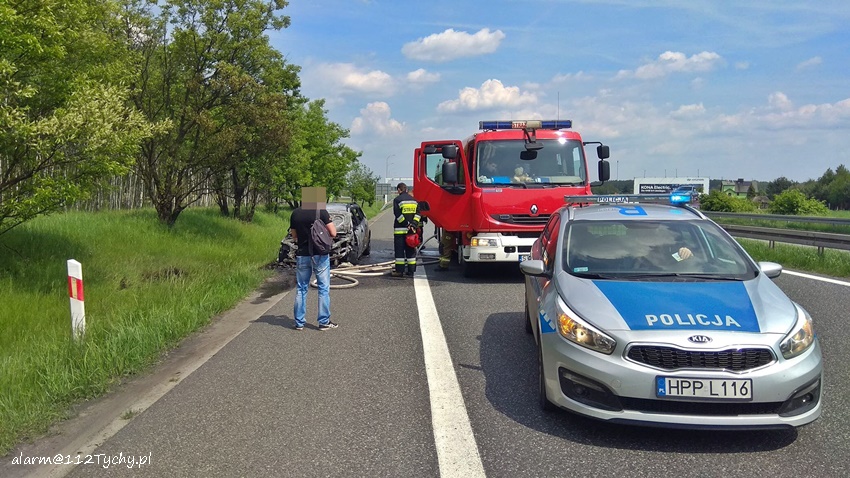 25 maja około godziny 13 dyżurny SKKM PSP Tychy otrzymał zgłoszenie o zdarzeniu drogowym z udziałem motocyklisty na trasie S1 za węzłem „Olszyce” w kierunku Tychów. Na miejsce zdarzenia zadysponowane zostały zastępy JRG Tychy, OSP Lędziny, JRG Mysłowice, zespół PRM oraz patrol bieruńskiej Policji. Po dotarciu na miejsce zgłoszenie zostało potwierdzone. Stan motocyklisty był na tyle poważny, że zapadła decyzja o konieczności transportu poszkodowanego do szpitala drogą lotniczą – w tym celu na miejsce zadysponowany został śmigłowiec LPR – Ratownik 4. Na czas startu i lądowania śmigłowca trasa S1 w obu kierunkach była całkowicie zablokowana. Dojazd służb ratunkowych był ułatwiony przez utworzony tzw. korytarz ratunkowy – niestety znaleźli się kierowcy, którzy zawracali i jechali pod prąd. W powstałym korku doszło dodatkowo do pożaru samochodu osobowego. Jego ugaszeniem zajęli się strażacy JRG Tychy. Jak się okazało w trakcie wykonywania czynności na miejscu zdarzenia przez bieruńskich Policjantów zdarzenie z udziałem motocyklisty miało miejsce na odcinku trasy S1 podlegającym KMP Katowice. To właśnie katowiccy Policjanci będą wyjaśniali przyczyny i okoliczności tego zdarzenia. Utrudnienia w ruchu na trasie S1 trwały blisko dwie godziny.