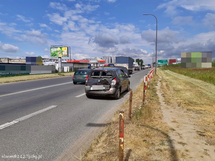 11lipca po godzinie 10 na ulicy Oświęcimskiej na pasie w kierunku browaru na wysokości stacji paliw Shell doszło do zdarzenia drogowego z udziałem dwóch osobówek. Kierowca Citroena z impetem uderzył w tył Renaulta. Na miejsce zadysponowane zostały zastępy JRG Tychy (GBA, SCRt), zespół PRM i patrol Policji. Ruch w kierunku browaru odbywał się z niewielkimi utrudnieniami. Citroenem podróżował sam kierowca, a renaultem podróżowały dwie kobiety. Jedna z kobiet podróżujących Renaultem wymagała pomocy medycznej i została ona przewieziona do szpitala na dokładniejsze badania. Kierowcy Citroena nic się nie stało. Ze wstępnych ustaleń pracujących na miejscu Policjantów wynika, że kierowca Citroena najprawdopodobniej zagapił się co doprowadziło do zdarzenia. Rozbite pojazdy zostały odholowane przez pomoc drogową. Tyscy Policjanci prowadzą dalsze postępowanie w sprawie tego zdarzenia.