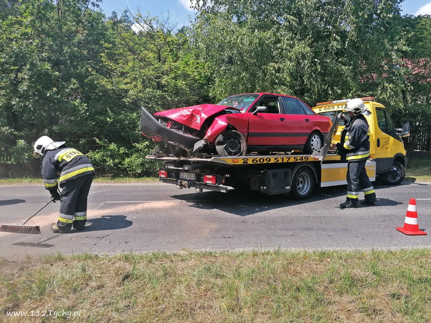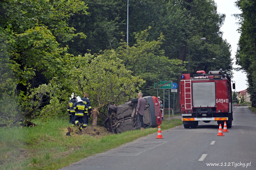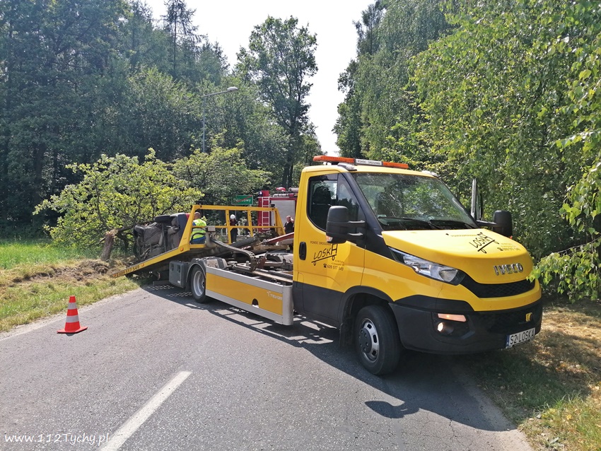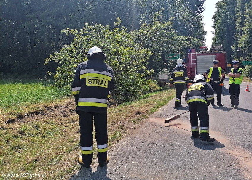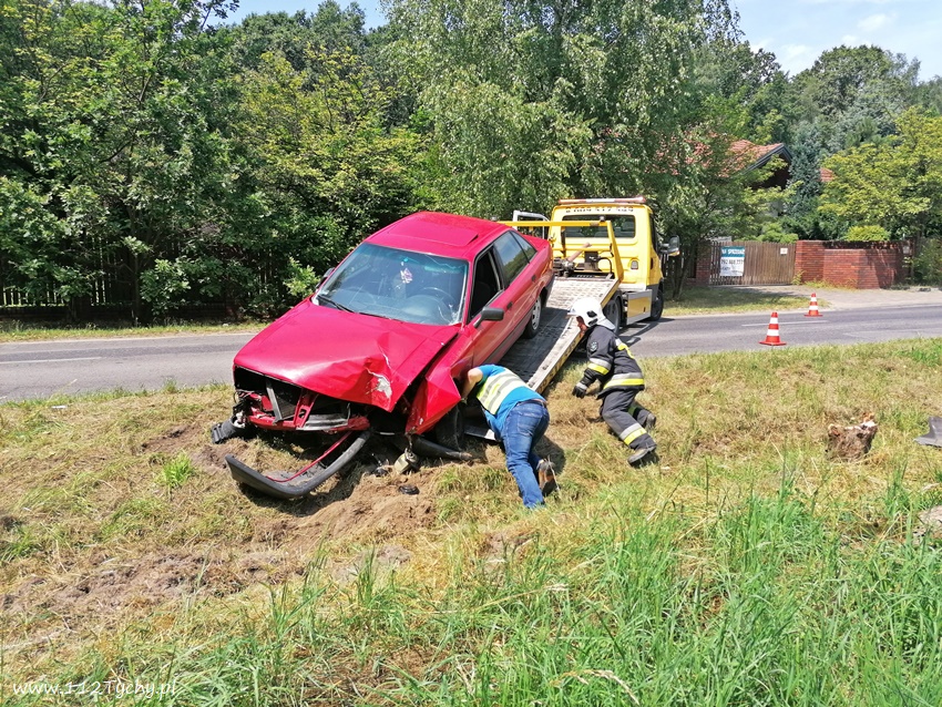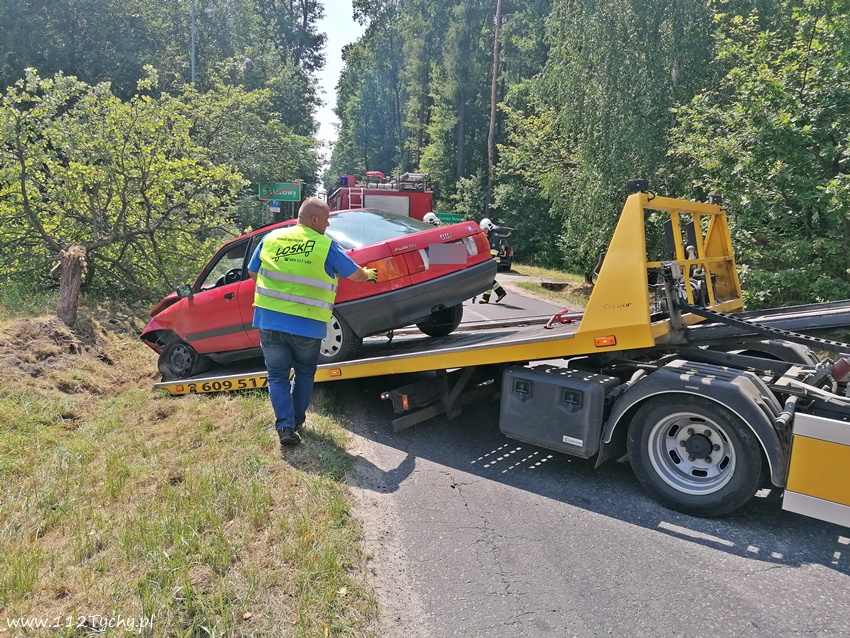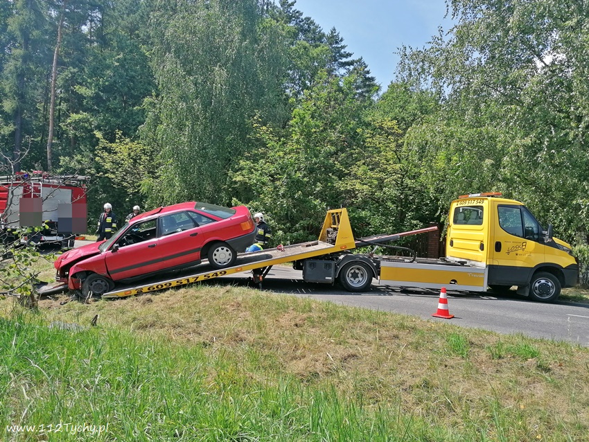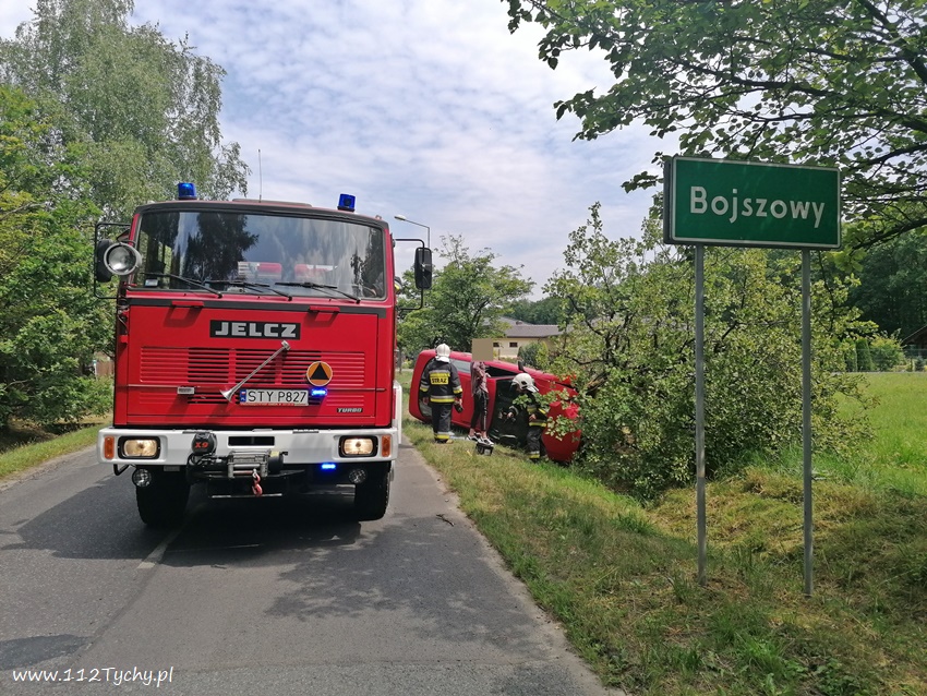 20 lipca około godziny 12:30 dyżurni SKKM PSP Tychy i KPP Bieruń otrzymali zgłoszenie o zdarzeniu drogowym na ulicy Dąbrowy w Bojszowach. Ze zgłoszenia wynikało, ze samochód osobowy wypadł z drogi i uderzył w przydrożne drzewo, a kierowca opuścił pojazd o własnych siłach. Na miejsce zdarzenia został zadysponowany zastęp OSP Bieruń Nowy (GCBA) – prze dysponowany z działań gaśniczych w Bojszowach przy ulicy Jedlińskiej. Po przybyciu na miejsce zgłoszenie potwierdziło się. Samochód osobowy marki Audi wypadł z drogi ścinając dwa drzewa i zatrzymując się na prawym boku. Strażacy zabezpieczyli miejsce zdarzenia oraz odłączyli akumulator. W miejscu zdarzenia wprowadzony został ruch wahadłowy. Kierowca rzeczywiście wyszedł z tego zdarzenia bez szwanku. Po około godzinie pojazd został postawiony na koła i odholowany przez holownik pomocy drogowej. Dodatkowo strażacy przy użyciu sorbentu zneutralizowali plamę płynów eksploatacyjnych. Bieruńscy Policjanci ukarali kierowcę mandatem karnym.