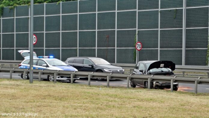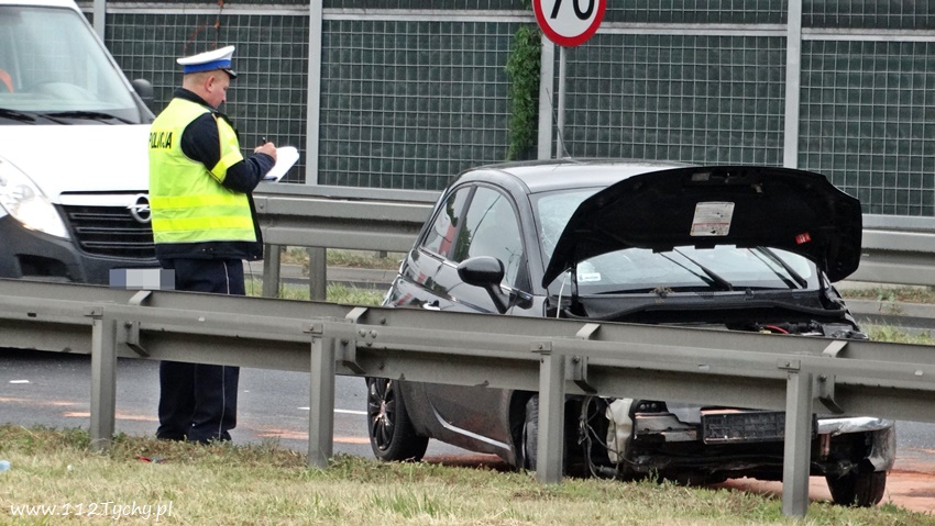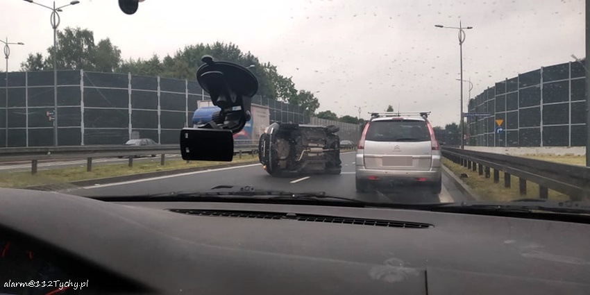 23 lipca około godziny 6:50 dyżurni SKKM PSP Tychy i KMP Tychy otrzymali zgłoszenie o dachowaniu samochodu osobowego na krajowej 1 w rejonie skrzyżowania z ul. Frycza – Modrzewskiego na pasie w kierunku Katowic. Na miejsce natychmiast zadysponowane zostały zastępy JRG Tychy (GBA, GCBARt, SLRt), zespół PRM oraz patrol Policji. Ruch w kierunku Katowic został zablokowany. Po przybyciu na miejsce zgłoszenie potwierdziło się. Ratownicy zastali osobowego Fiata leżącego na lewym boku. Kierująca pojazdem kobieta trafiła pod opiekę ratowników medycznych, a następnie została przewieziona do szpitala na badania. W miejscu zdarzenia wprowadzony został objazd ulicą Frycza – Modrzewskiego, a po wykonaniu dokumentacji i postawieniu pojazdu na kola ruch został puszczony lewym, pasem. Ze wstępnych ustaleń pracujących na miejscu Policjantów wynika, ze przyczyną zdarzenia była utrata panowania nad pojazdem. Przez około półtorej godziny w rejonie miejsca zdarzenia występowały utrudnienia w ruchu. Tyscy Policjanci prowadza dalsze postępowanie w sprawie tego zdarzenia.