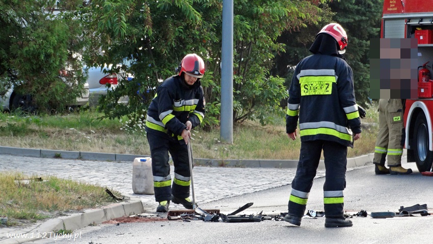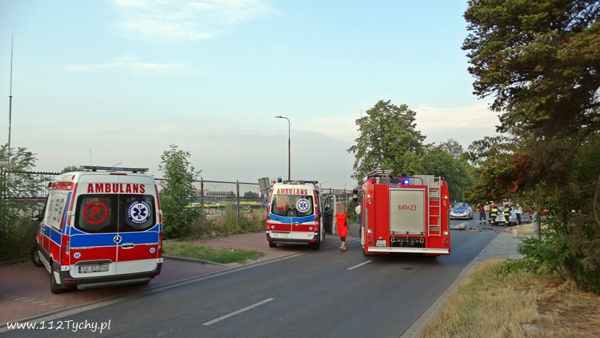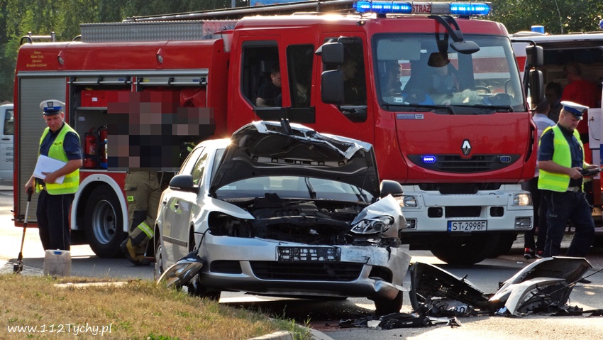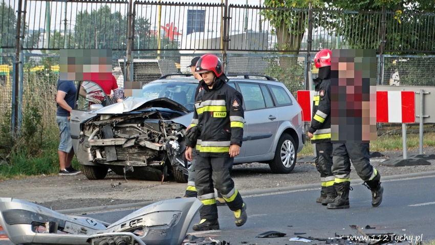 30 lipca po godzinie 6.30 na ulicy Fabrycznej w rejonie nr 11 – na wysokości zajezdni PKM – u doszło do czołowego zderzenia dwóch samochodów osobowych: Skoda I Renault. Na miejsce zdarzenia natychmiast zadysponowane zostały zastępy JRG Tychy (GBA, GCBARt, SCRt), zespoły PRM oraz patrol Policji. Ruch w obu kierunkach został całkowicie wstrzymany. W wyniku tego zdarzenia poszkodowane zostały dwie osoby, kierujący pojazdami: kierująca Skoda kobieta oraz mężczyzna – kierowca Renaulta. Obydwoje trafili pod opiekę ratowników medycznych, a następie zostali przewiezieni do szpitala na badania. Na szczęście kierujący nie doznali poważniejszych obrażeń. Ze wstępnych ustaleń pracujących na miejscu Policjantów wynika, że sprawcą zdarzenia jest kierujący Renaultem, który wykonując manewr skrę tu w lewo na pobliską stację paliw najprawdopodobniej zagapił się i wymusił pierwszeństwo na jadącej z naprzeciwka Skodzie doprowadzając do zderzenia. Utrudnienia w ruchu w miejscu zdarzenia trwały około godziny. Rozbite pojazdy zostały odholowane przez pomoc drogową. Tyscy Policjanci prowadzą dalsze postępowanie w sprawie tego zdarzenia.