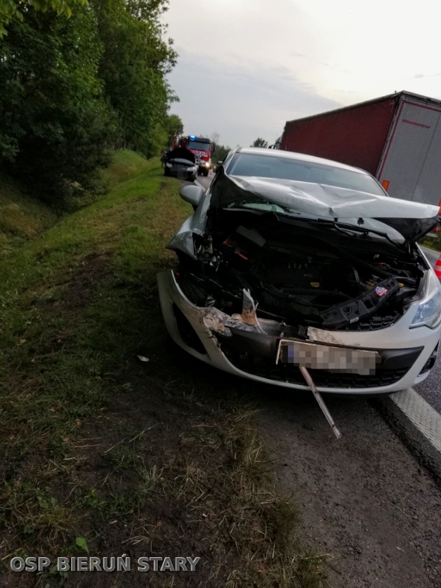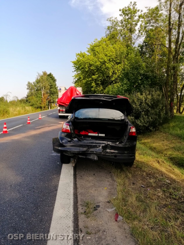 26 sierpnia około godziny 15:450 dyżurny SKKM PSP Tychy otrzymał zgłoszenie o zdarzeniu drogowym na ulicy Warszawskiej (DK 44) w Bieruniu. Ze zgłoszenia wynikało, że doszło do najechania na tył poprzedzającego pojazdu. Na miejsce zdarzenia zadysponowane zostały zastępy OSP Bieruń Stary (GBA) oraz JRG Tychy (GBA, SCRt) oraz patrol Policji. Po przybyciu na miejsce strażacy zabezpieczyli je, udzielili kwalifikowanej pomocy przedmedycznej jednej z uczestniczek zdarzenia oraz przystąpili do neutralizacji plamy płynów eksploatacyjnych. Na miejsce dodatkowo zadysponowany został zespół PRM, który zaopiekował się poszkodowaną. Z ustaleń pracujących na miejscu Policjantów wynika,, że kierowca Opla nie zachował ostrożności i uderzył w tył Forda. Na szczęście nikomu nic poważnego się nie stało. W miejscu zdarzenia wprowadzony został ruch wahadłowy. Po wykonaniu dokumentacji przez pOlicjantów uszkodzone pojazdy zostały odholowane, a ruch przywrócony.
