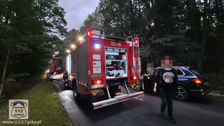 25 września około godziny 18:20 na ulicy Przelotowej w Kobiórze doszło do zderzenia dwóch samochodów osobowych. W wyniku zderzenia jeden z pojazdów wypadł z drogi i zatrzymał się w przydrożnym rowie. Na miejsce zadysponowane zostały zastępy OSP Kobiór (GBA), JRG Pszczyna (GBA, SLRt), patrole pszczyńskiej Policji oraz zespoły PRM. Na czas działań ratunkowych ruch został całkowicie wstrzymany. Osoby podróżujące pojazdami trafiły pod opiekę ratowników medycznych. Ze wstępnych ustaleń pracujących na miejscu Policjantów oraz relacji uczestników zdarzenia wynika, że do zdarzenia doszło w chwili gdy jeden z pojazdów miał być wyprzedzany, a kierowca jednego z pojazdów utracił panowanie nad swoim pojazdem i zjechał na przeciwległy pas ruchu gdzie doszło do zdarzenia. Pszczyńscy Policjanci prowadzą dalsze postępowanie w sprawie tego zdarzenia.